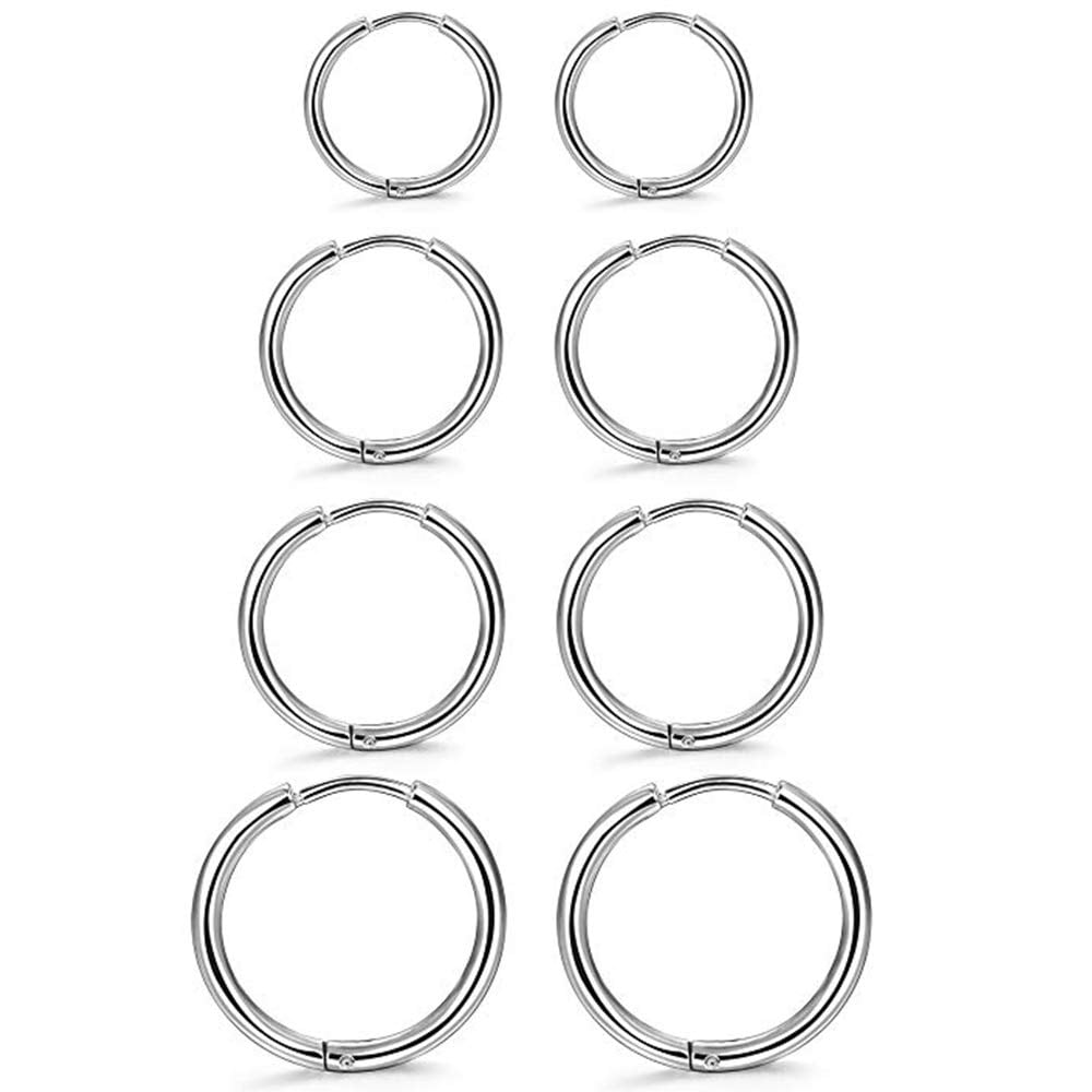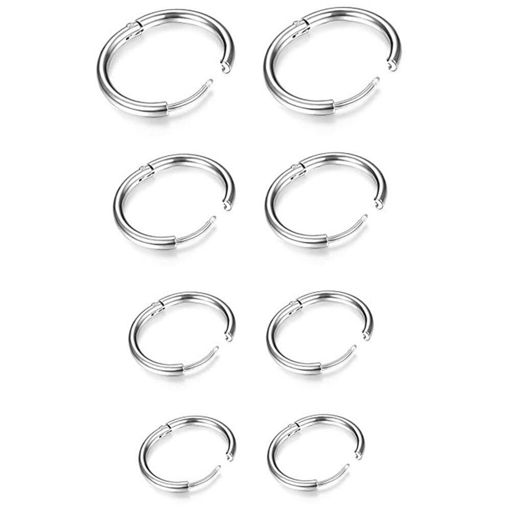 (送料込)Yesallwas リング ピアス メンズ レディース 8個セット サージカルステンレス あれるぎー対応 フープピアス シンプル シルバー ピアス セット12mm 14mm 16mm 20mm (A)