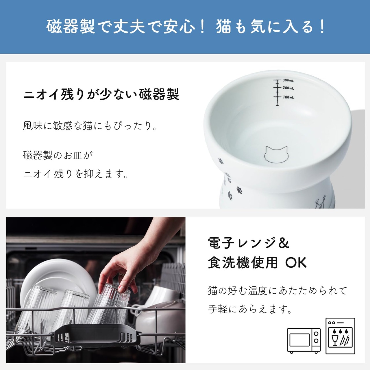 猫壱(necoichi)ハッピーダイニング 猫用 脚付ウォーターボウル ハイタイプ 猫柄 電子レンジ&食器洗浄機対応