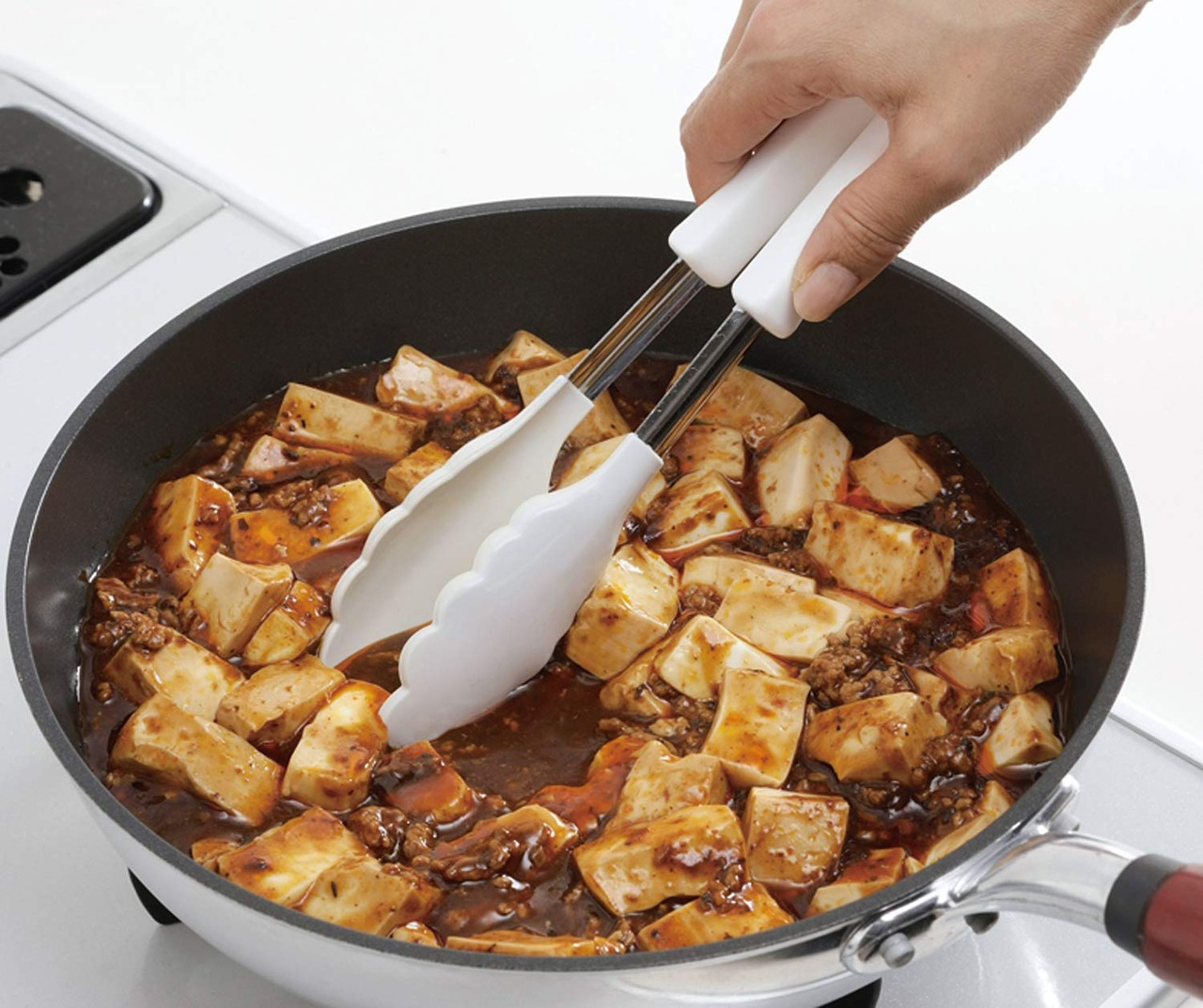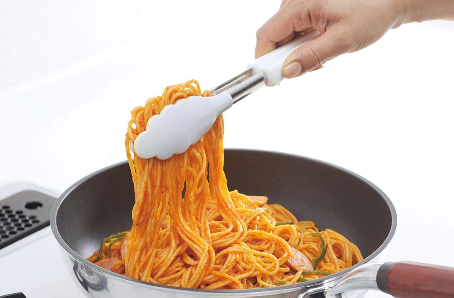 下村企販 フライパンをキズつけない シリコントング 【日本製】 食洗機対応 揚げ物調理OK 軽い力で掴める 取り分け 耐熱 ホワイト 燕三条 39958