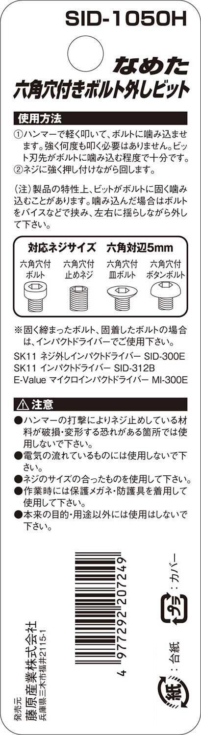 SK11(エスケー11) なめた六角穴付ボルト外しビット 対応ネジサイズ六角対辺5mm SID-1050H