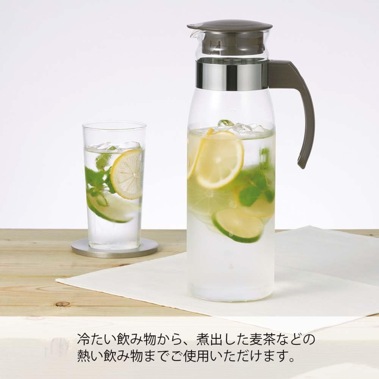 大きなハンドル付きで、持ちやすい冷蔵庫ポットです。
