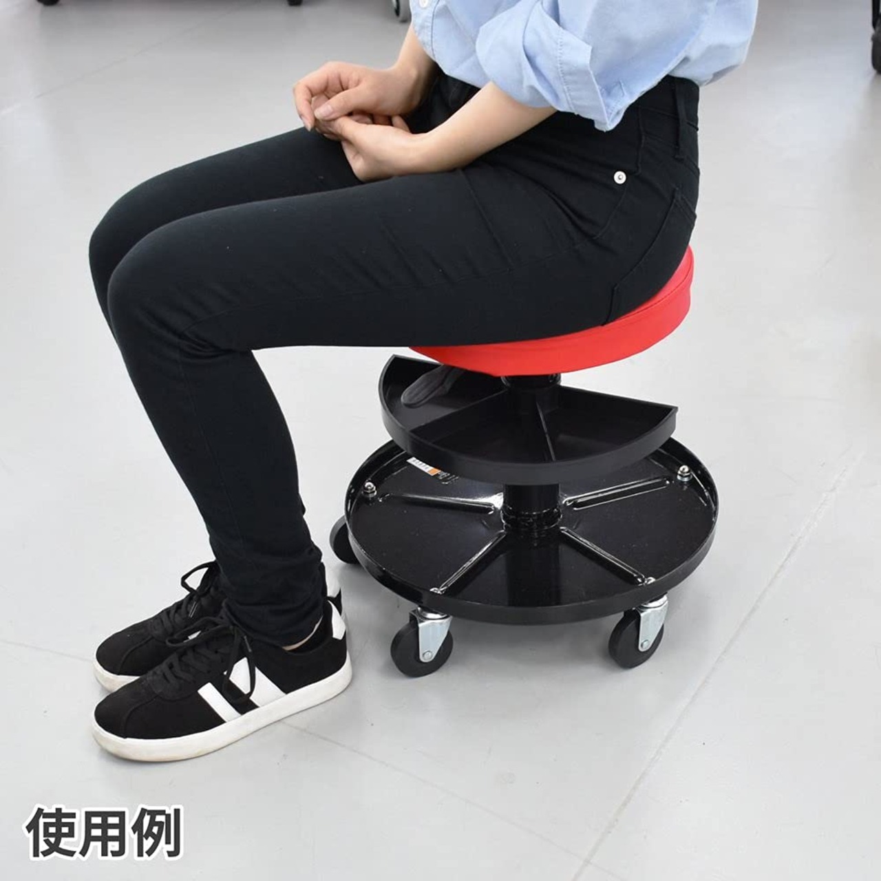 ガレージで中腰作業が多い方に腰の負担を和らげるキャスター移動式の椅子です。