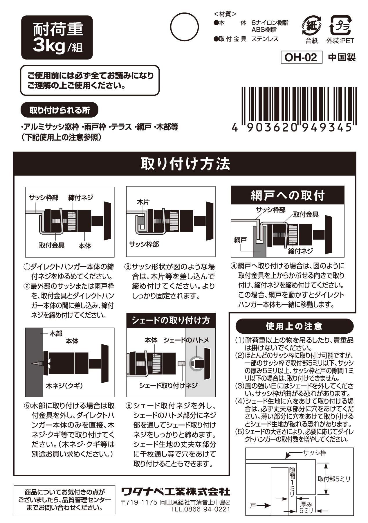 (送料込)ワタナベ工業 オーニング用ダイレクトフック
