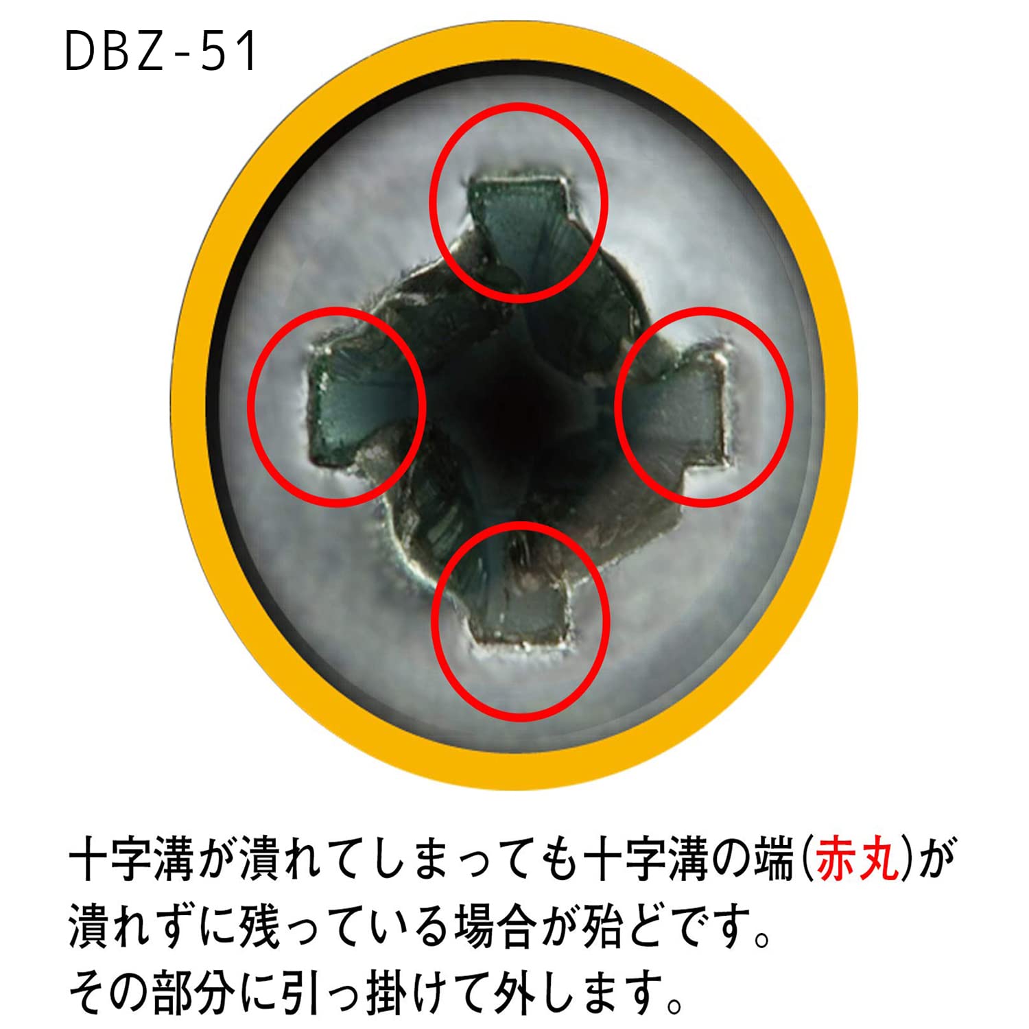 重症用ビットは潰れたネジをハンマーで叩いて外せます。品番:DBZ-52
