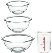 iwaki(イワキ) AGCテクノグラス 耐熱ガラス ボウル 丸型 3点セット メジャーカップ付き 電子レンジ/オーブン/食洗器対応 食材を混ぜやすい広口デザイン 安定しやすい低重心設計 PS-BO-3B1M
