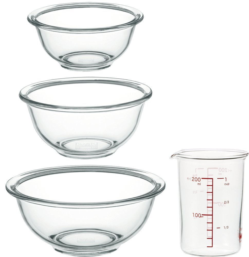 (送料込)iwaki(イワキ) AGCテクノグラス 耐熱ガラス ボウル 丸型 3点セット メジャーカップ付き 電子レンジ/オーブン/食洗器対応 食材を混ぜやすい広口デザイン 安定しやすい低重心設計 PS-BO-3B1M | デイリーメインベース