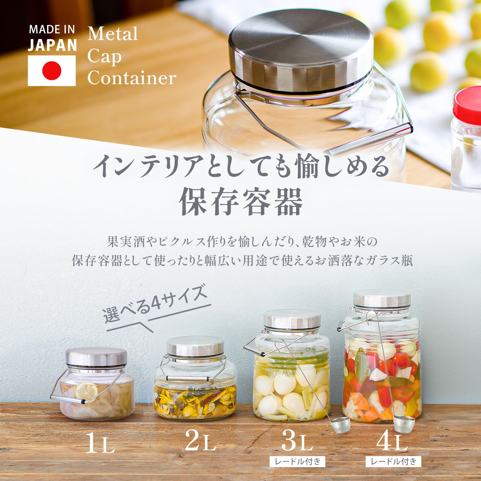 アデリア(ADERIA) MCコンテナー2L 日本製 化粧箱入り 梅酒瓶 保存容器 梅瓶 保存瓶 米びつ ステンレスキャップ ガラス瓶 ガラス キャニスター 密閉容器 調味料入 瓶 密閉 コーヒー豆 814