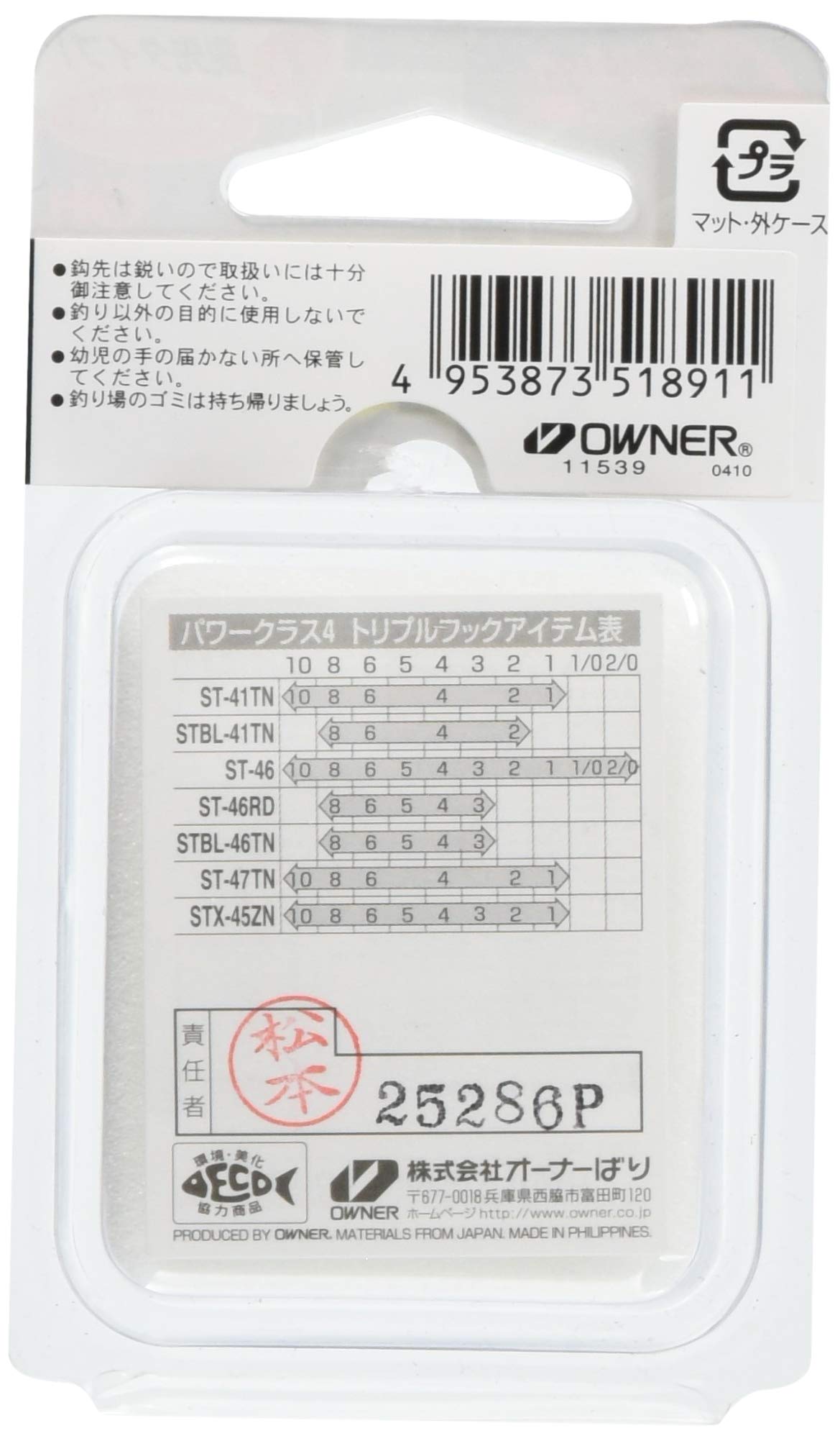 OWNER(オーナー) フック カルティバ ST-46 スティンガートリプルフック ガンブラックコート No.11539