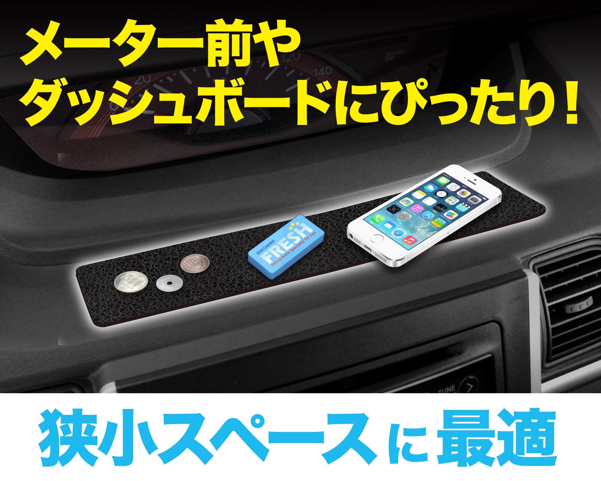 ダッシュボード等に敷くだけの簡単取付け、小物等のすべりを防止