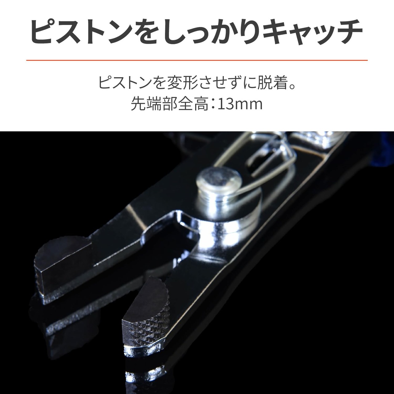片押し&対向ピストンキャリパーのメンテナンス時にキャリパーピストンの脱着に使用。握り込んでも手が痛くなりにくいソフトグリップ仕様。