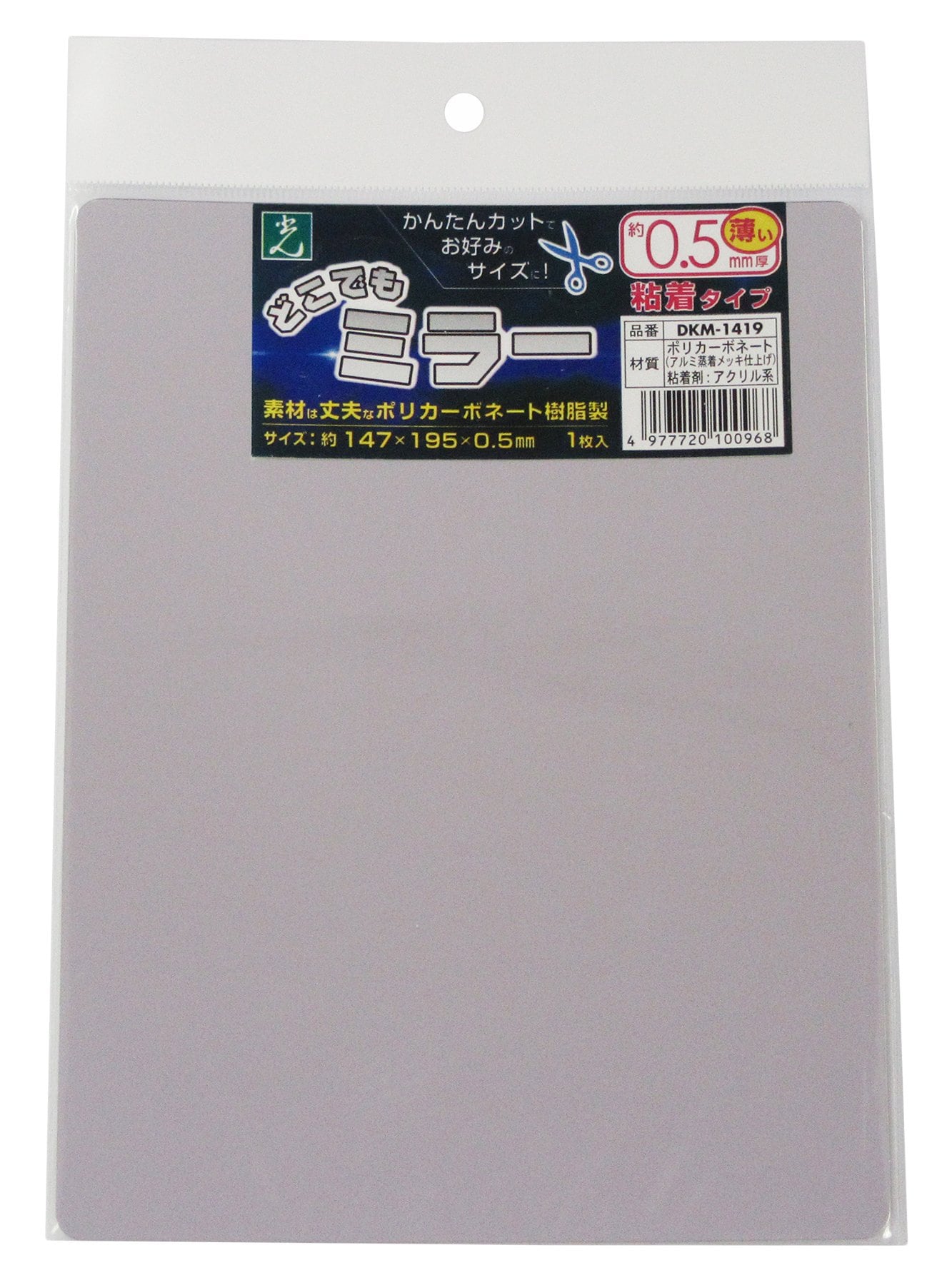 光 ウォールマウント どこでもミラー 粘着付 鏡 147×195×0.5mm DKM-1419