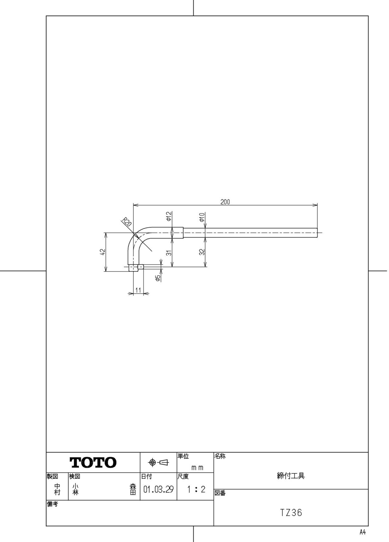 TOTO ワンホール水栓取り外し用締付工具 TZ36