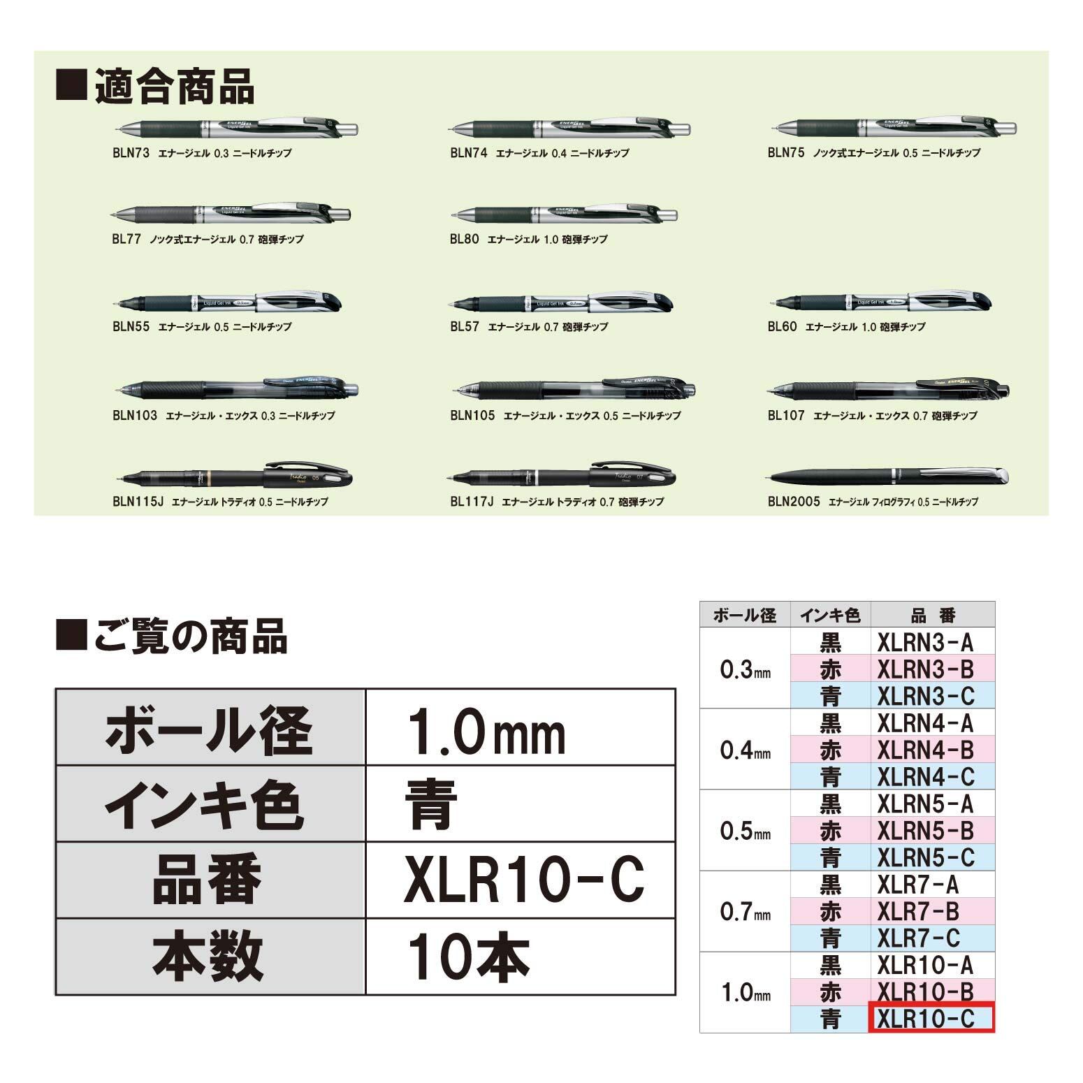 ぺんてる ボールペン替芯 エナージェル 1.0mm XLR10-C 青 10本