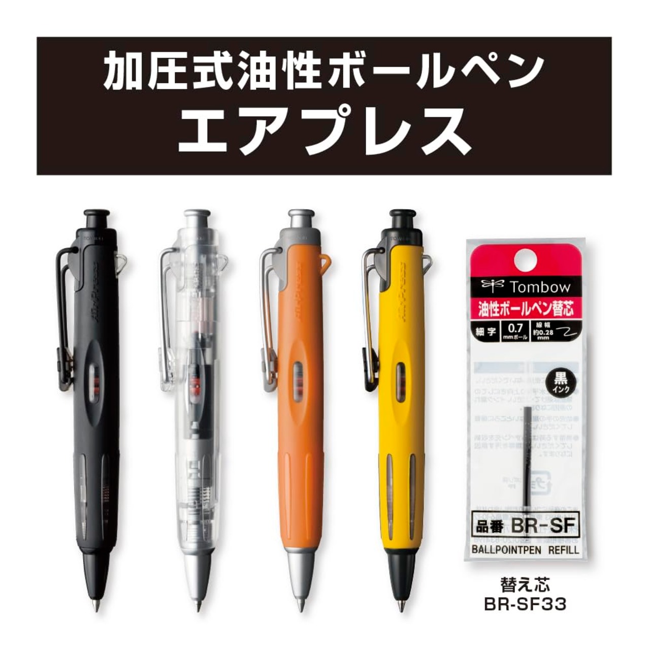 トンボ鉛筆 加圧式 油性ボールペン (湿った紙面/仰向けでも書ける) 空気の力でインクを押し出すエアプレス 0.7 フルブラック BC-AP12