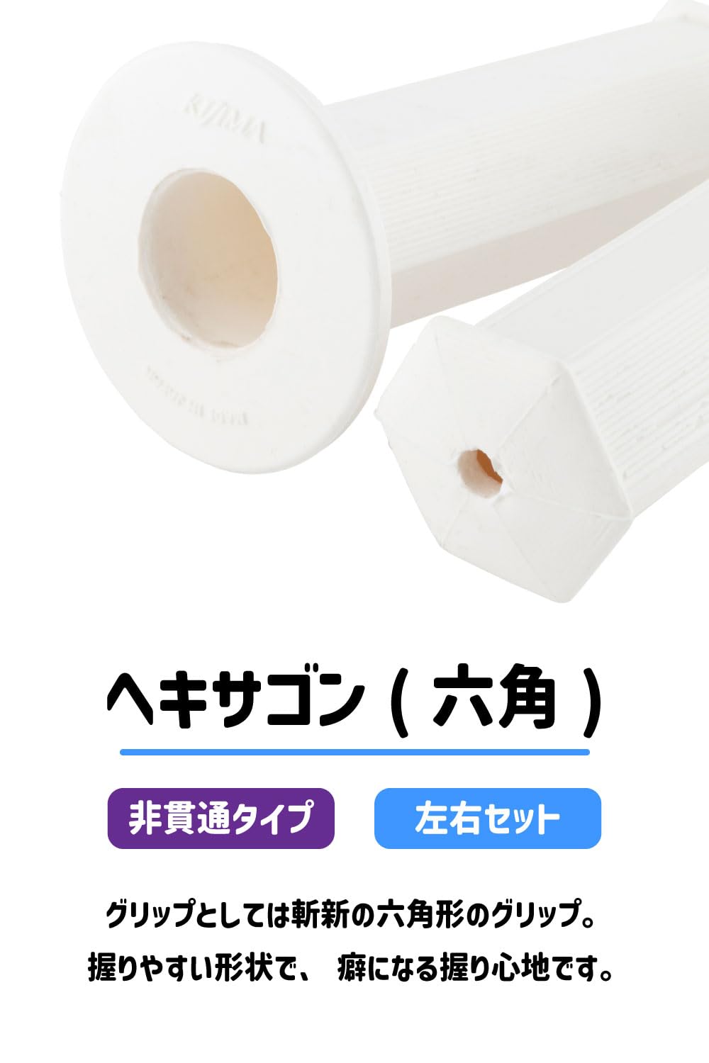 キジマ(Kijima) バイクパーツ グリップ 六角(ヘキサゴン) ラバー製 130mm φ22.2mm 非貫通タイプ 汎用 ホワイト 201-192