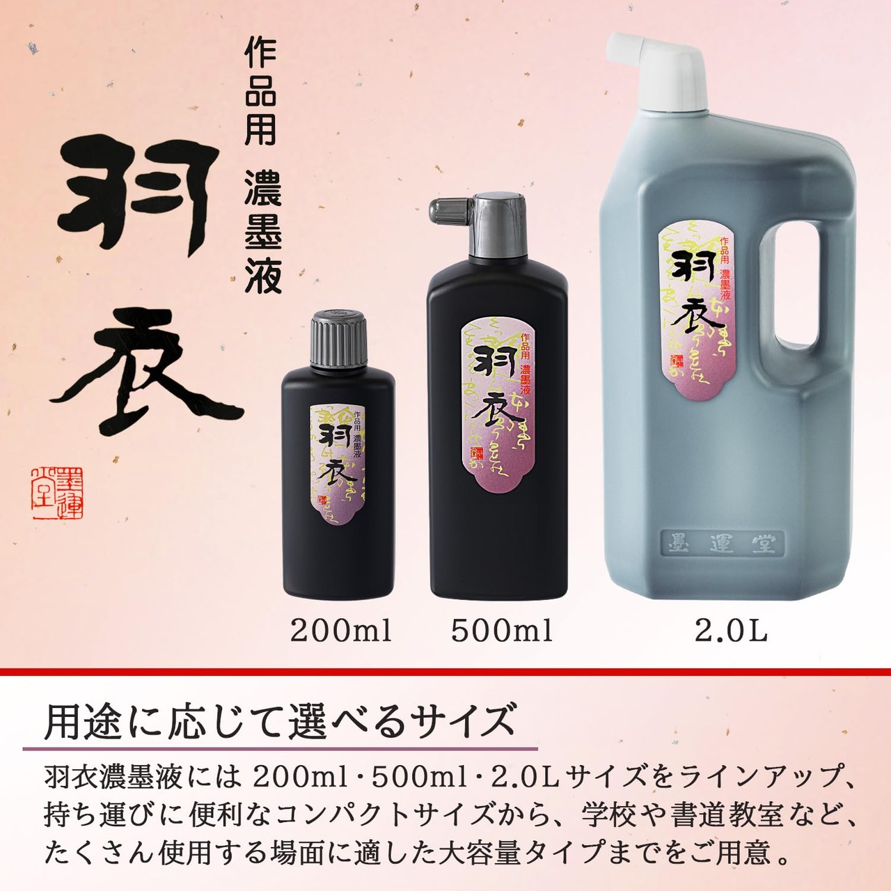 墨運堂 墨汁 羽衣 濃墨液 作品用 500ml 12012