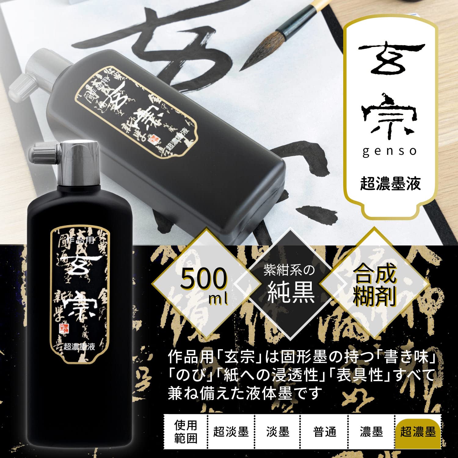 【玄宗】 固形墨の持つ書き味、暢び、紙への浸透性・表具性をすべて備えた液体墨として開発されたシリーズ