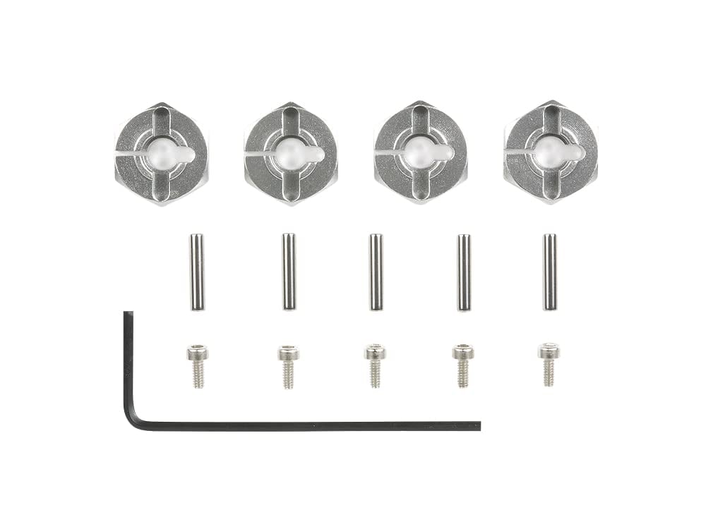 クランプ式アルミホイールハブ(6mm厚)。対応するタミヤ製シャーシは、TA04、TA04-SS、TB-01、TL-01、TT-01、FF02、M-03、M-03L、M-04L、M-04M、F201、TBエボIV、TRF415、TG10-Mk.I、TG10-Mk.II、TGS・TGS-R。