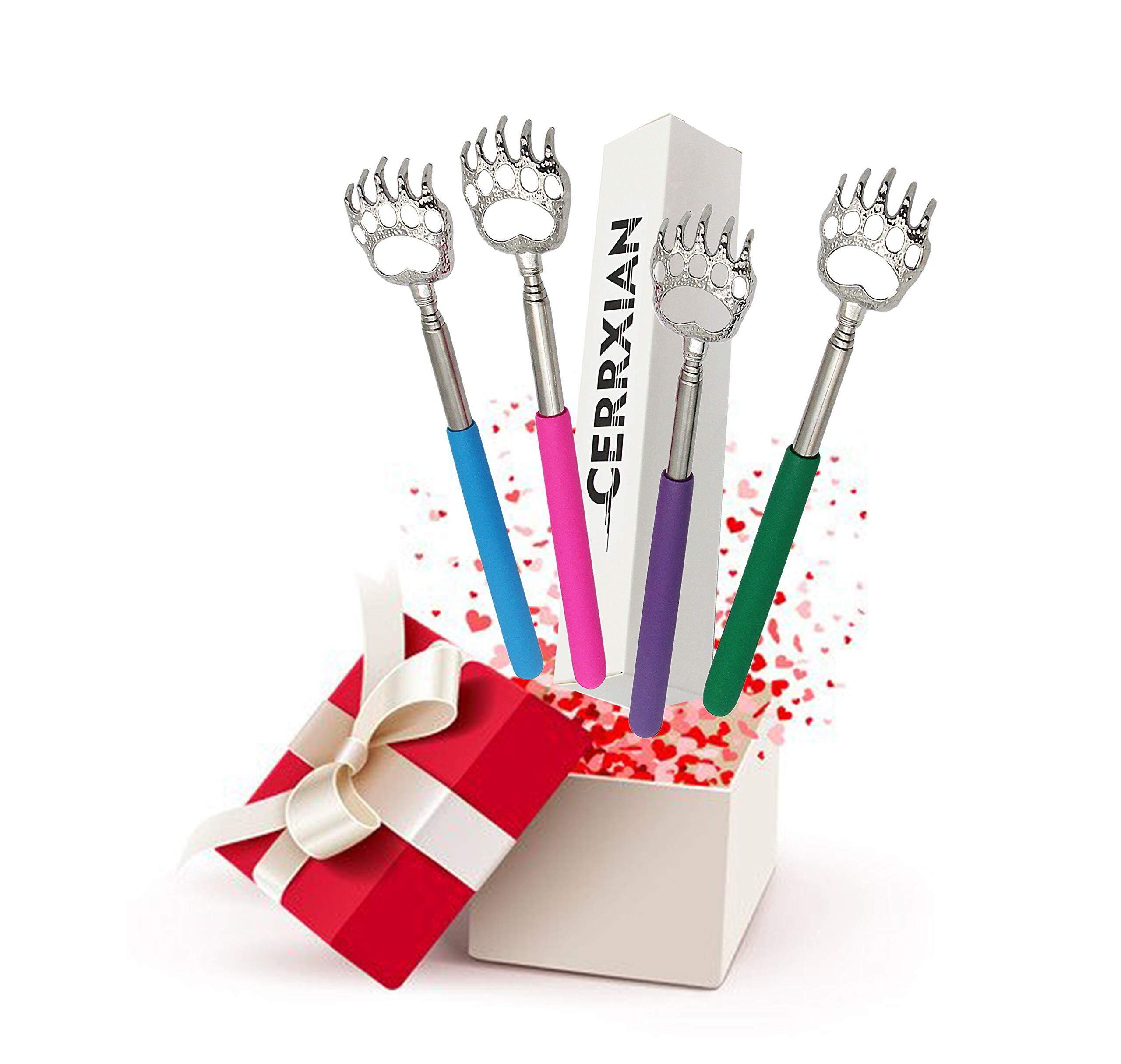 (送料込)CERRXIAN 孫の手 クマの爪 伸縮 携帯 伸びる熊の手 伸びる孫の手 かゆいところに手が届く 伸縮自在 背中か ボディくすぐる、ステンレス鋼とゴム製のハンドルで作られた、四本セット4色(赤、青、緑、紫) | デイリーメインベース