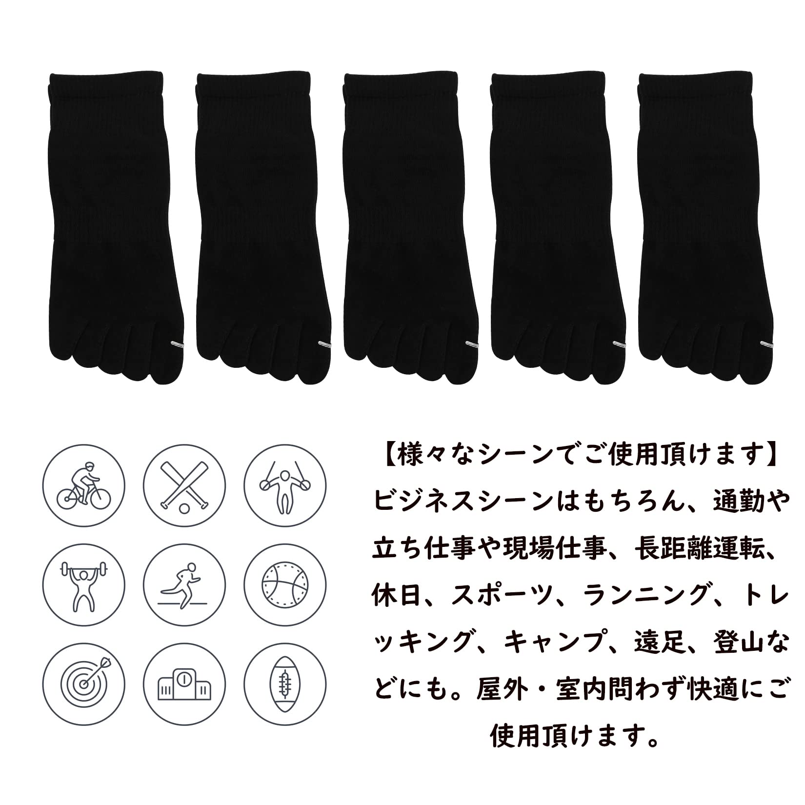 【優れたデザイン】:従来の5本指ソックスとは異なり、立体的に編まれた5本指、通常の平な指先ではなく、立体的に編むことで履くときに指が入れやすい。清掃するときは洗濯機で洗うか手洗いをする。