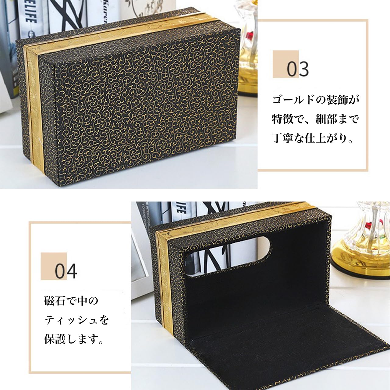 お洒落で高級感のあるゴージャスなティッシュケースです。ゴールドのラインが特徴的で豪華さやエレガントさを演出しています。機能面もしっかりとしているので、ご自宅はもちろんオフィス、ホテル、レストラン、飲食店など様々な場所でお使いいただけます。また贈り物やプレゼントとしてもおすすめです。
