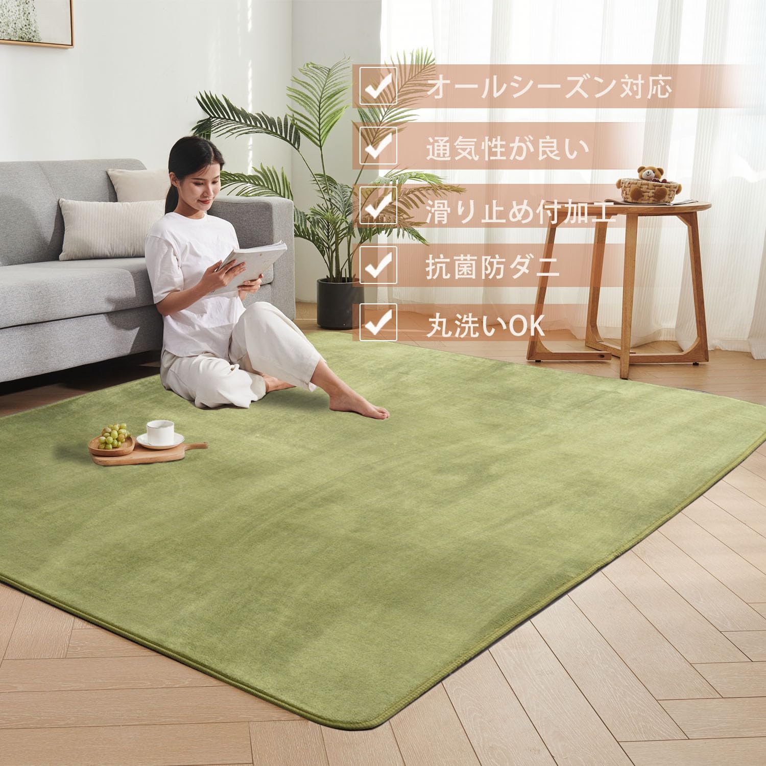 (送料込)aicomri カーペット ラグ ラグマット 1.5畳 洗える 厚约7mm 130×185cm じゅうたん 滑り止め ホットカーペット対応 カーペット オールシーズン 抗菌防臭 防ダニ 撥水加工 床暖房対応 フランネル らぐまっと 無地・グリーン | デイリーメインベース