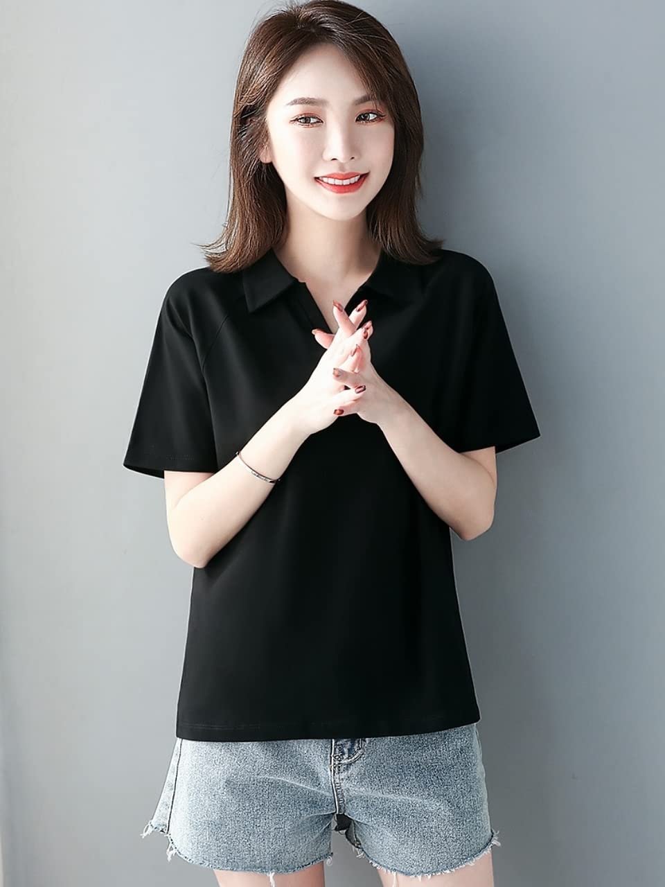 【爽やか & 清潔感】ポロシャツスタイルの襟のついたTシャツ(ボタンはついていません)
