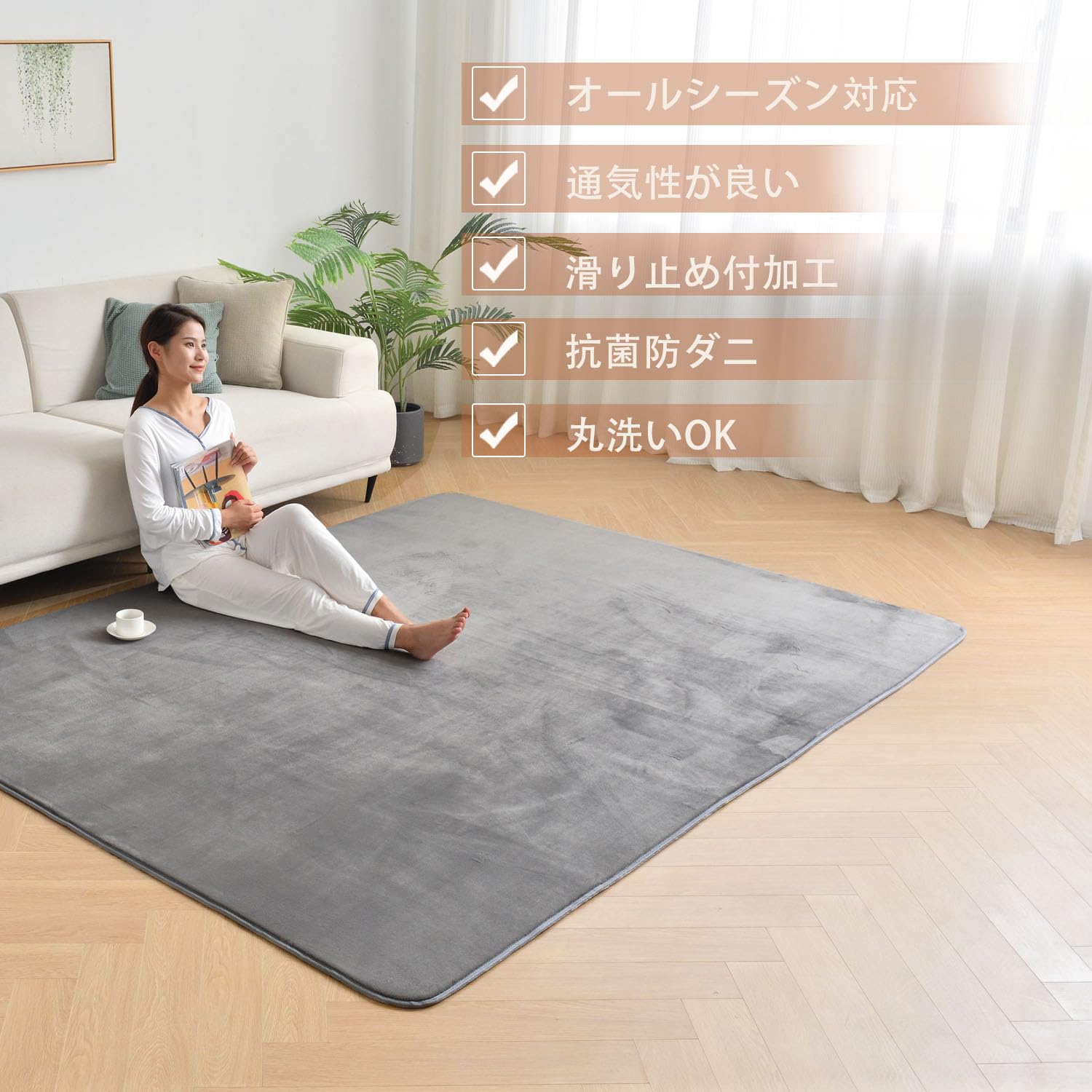 (送料込)aicomri カーペット ラグ ラグマット 1.5畳 洗える ホットカーペットカバー 厚约7mm 130×185cm 滑り止め じゅうたん 床暖房対応カーペット 抗菌防臭 防ダニ オールシーズン フランネル らぐまっと 無地・グレー | デイリーメインベース