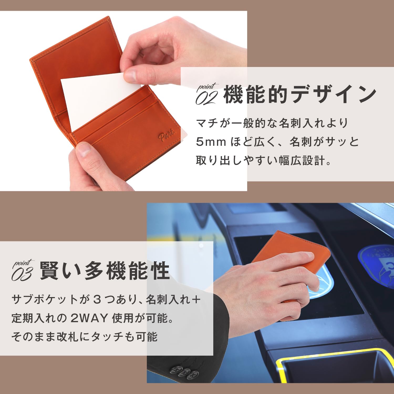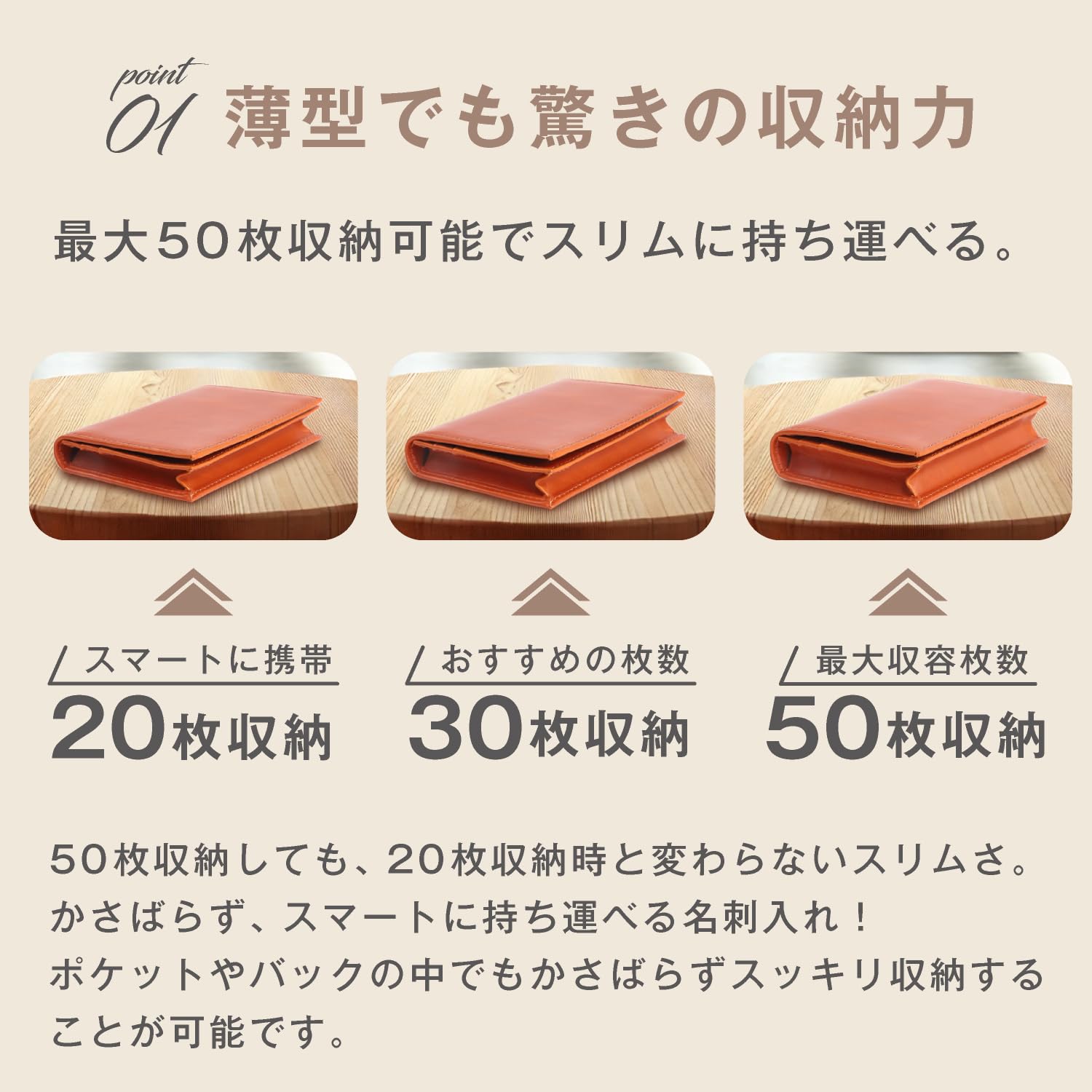 【最大50枚収納の大容量】厚手の名刺でも約50枚をしっかり収納。仕分けポケット付きで、自分用・相手用に整理可能です。