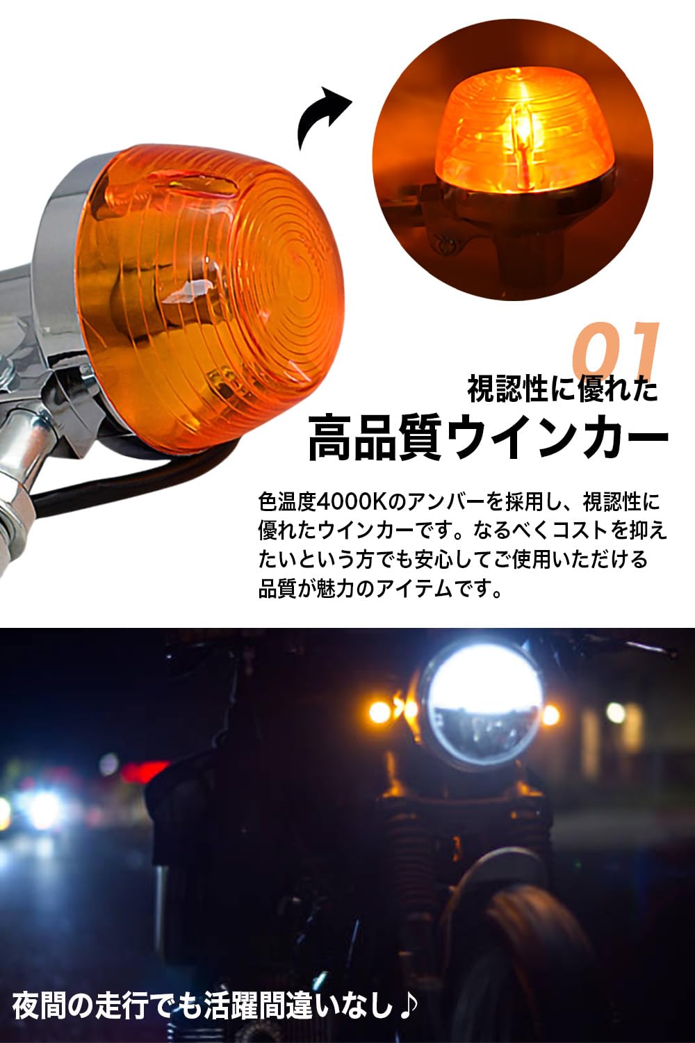 高品質:色温度4000Kのアンバーを採用した視認性に優れたウィンカー。夜の走行も問題ありません。なるべくコストを抑えたい方におすすめの魅力的なアイテムです。