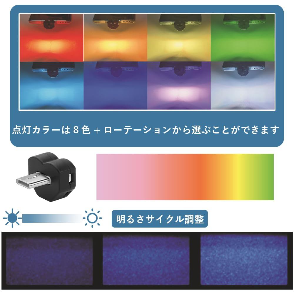 (送料込)【DFsucces】Type-C LEDライト 8色調色 USB 車内用 雰囲気ライト イルミネーション メモリー機能 自動点灯 RGB USB給電 調光機能 アンビエントライト 小型 軽量 簡単取付