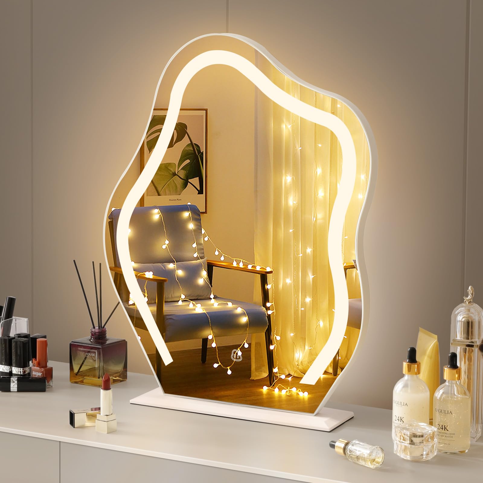 (送料込)FENCHILIN 女優ミラー 鏡 卓上 壁掛け 2WAY ライト付き 化粧鏡 ハリウッドミラー 女優鏡 卓上鏡 壁掛けミラー led ミラー 三色照明モード 無段階調光 10倍拡大鏡付き くも型 44.7×54.6CM | デイリーメインベース