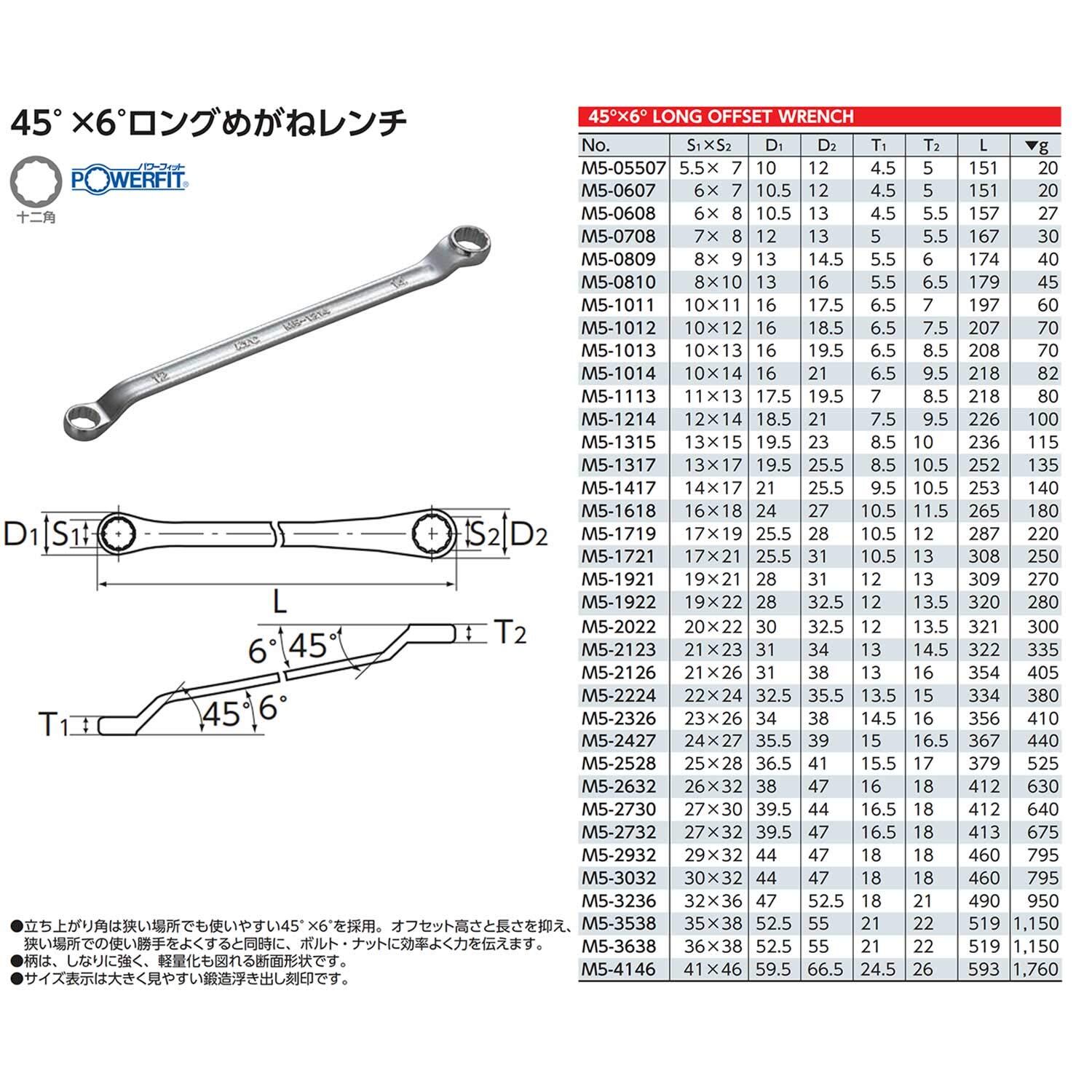 京都機械工具(KTC) 45°×6° ロングめがねレンチ 12×14 M5-1214