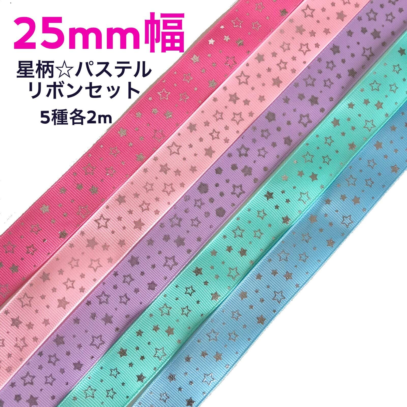 (送料込)【ラッピングファクトリー】星 デザイン キラキラ ゆめかわ パステル リボンセット 25mm幅 各2m 5種セット