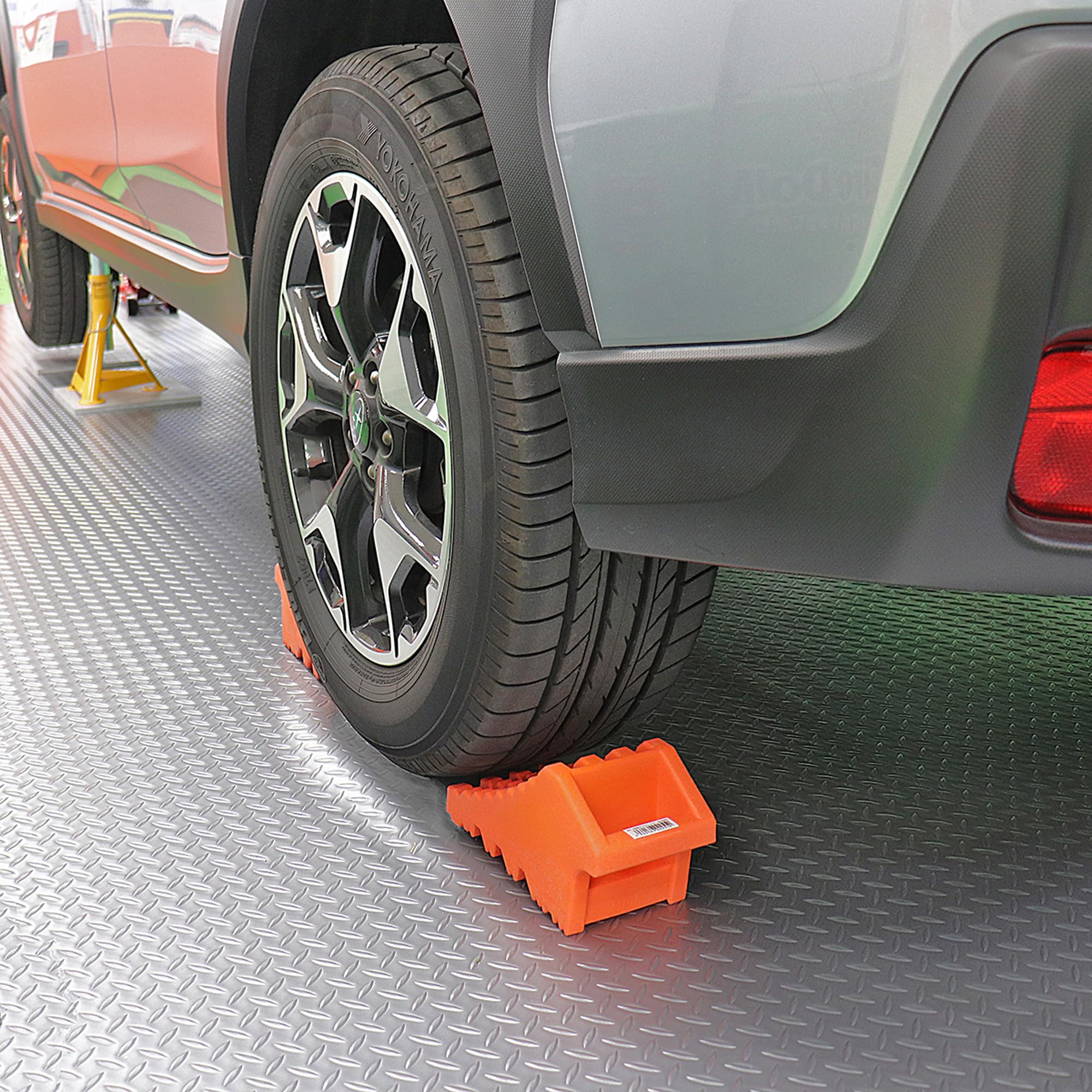 軽くて扱いやすい!樹脂製タイヤストッパー 視認性の高いオレンジ色が置き忘れ防止に