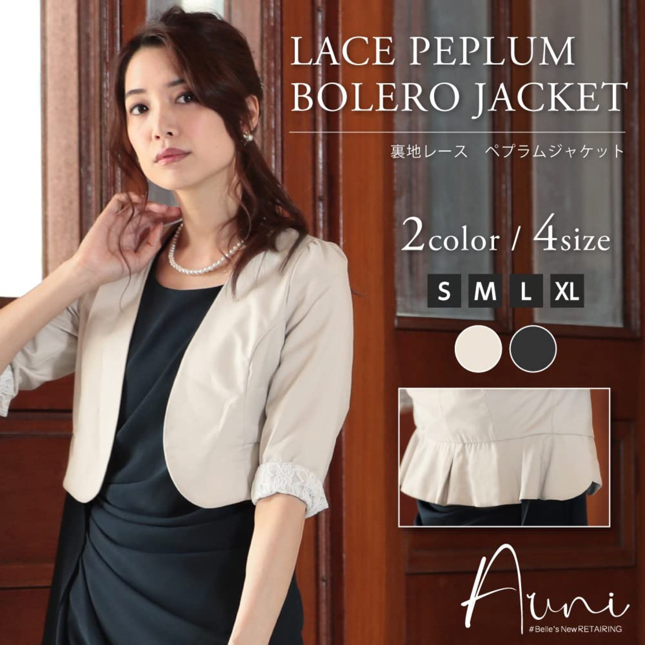 アウニイ AUNI 裏地 レース ノーカラー パーティー ボレロ レディース