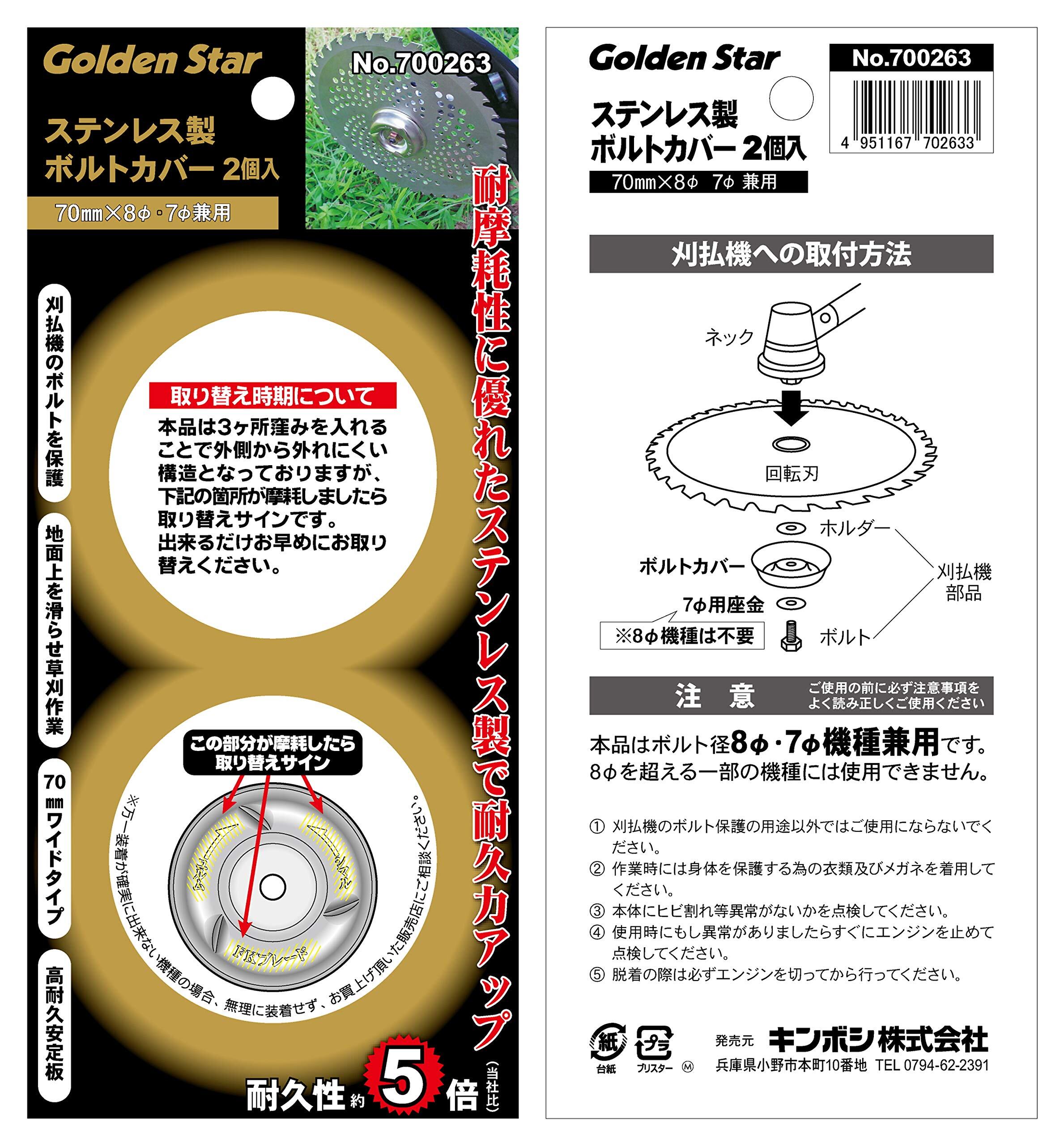 キンボシ(Kinboshi) ゴールデンスター ステンレス製ボルトカバー2個入 刈払機70mm×8Φ・7Φ兼用 700263 シルバー