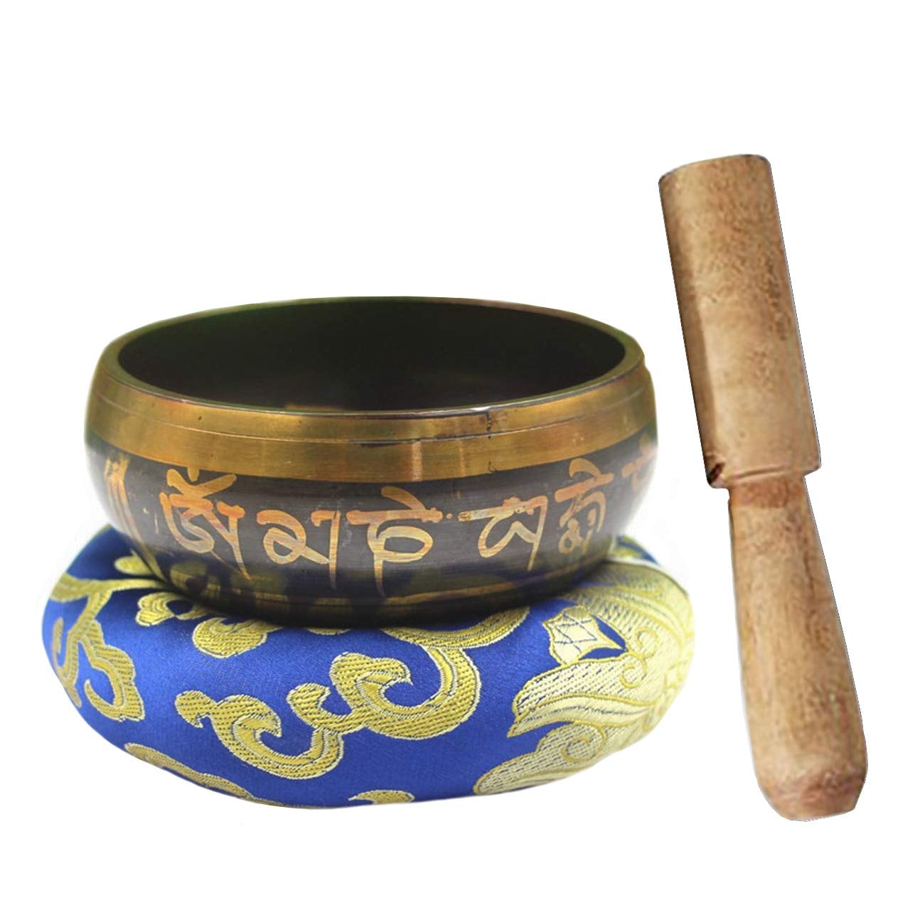 Felimoa シンギングボウル 倍音 スティック 円座 六字真言 集中力 瞑想 ヨガ ヒーリング (ブルー)