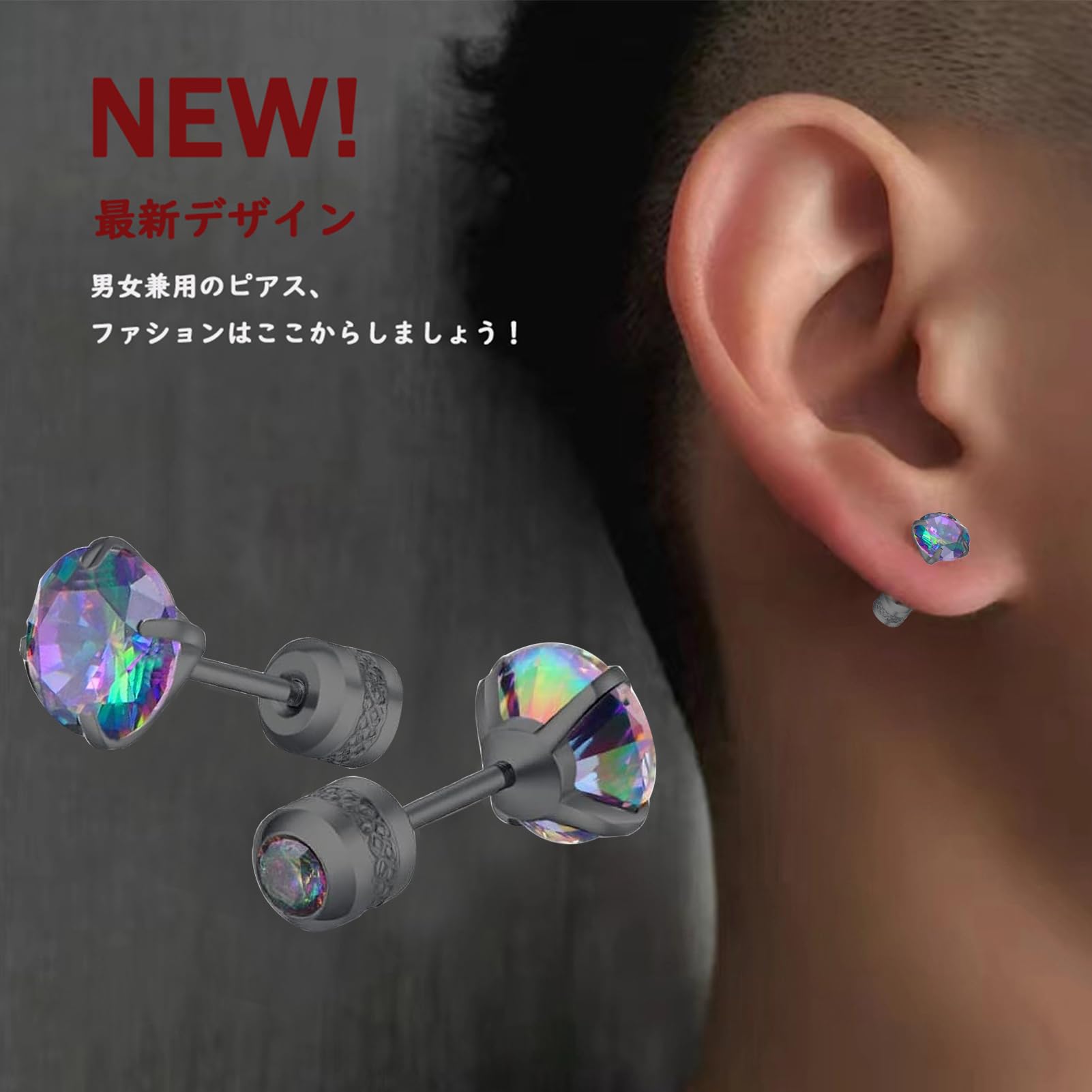 【ピアス】両耳用 材質:チタンステンレス 石:直径5mm 石の色:AB 2個セット(1ペア)