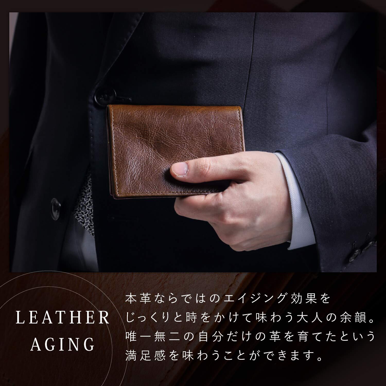 【上質な高級本革を使用】 伝統ある東京下町工房の熟練した職人が心を込めて丁寧に手作りした、ハイクオリティの名刺入れです。素材は厳選した高級本革を使用し、傷が目立ちにくいビンテージ加工を施す事で光沢のある上品な見た目を実現しました。熟年技ならではのステッチの美しさも是非お楽しみください。