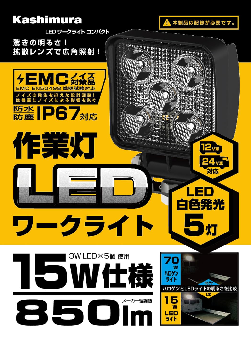 カシムラ(Kashimura) LEDワークライト コンパクト 2個セットLED5灯 白色 15W 850lm 6000K ノイズ対策 IP67 DC12/24V NML-132