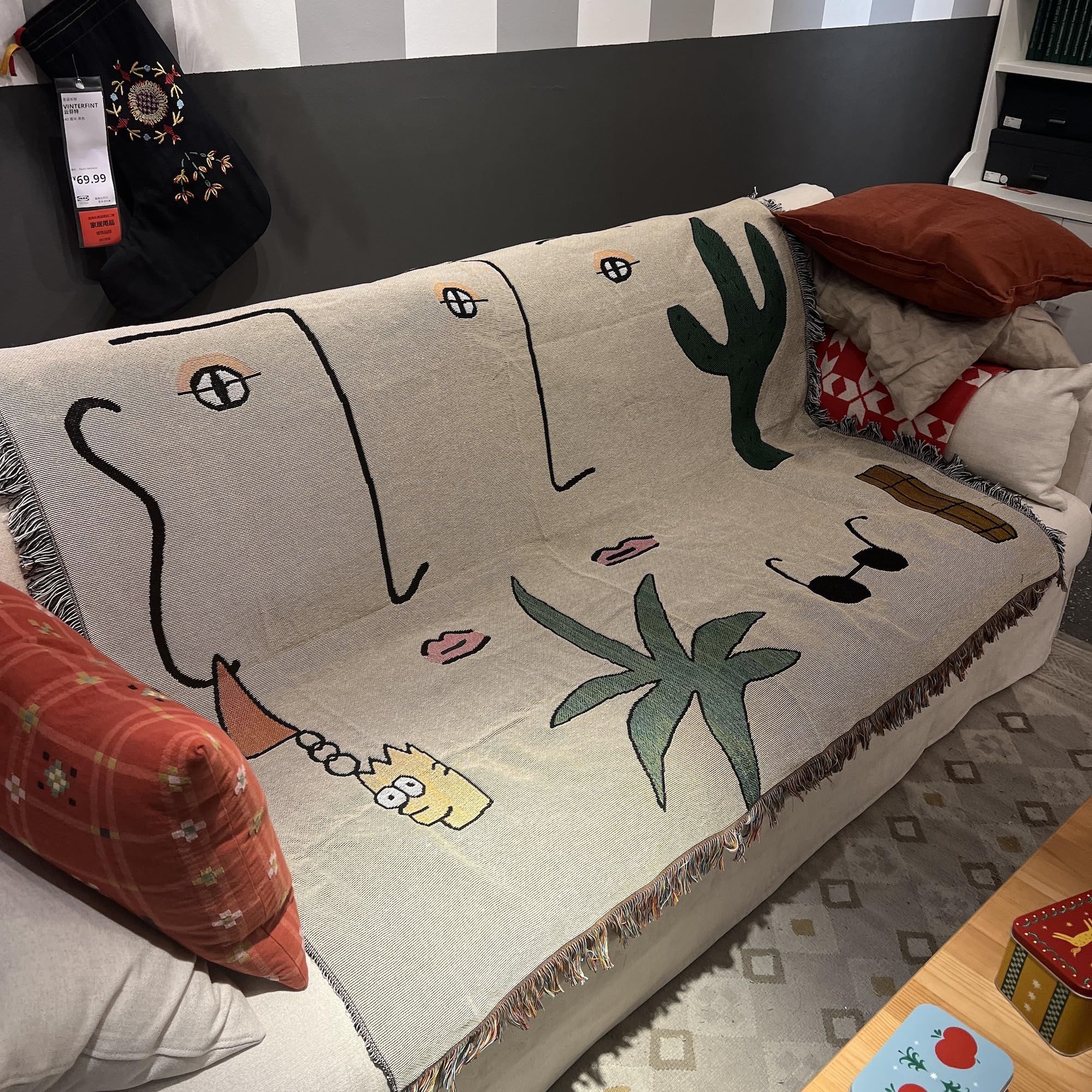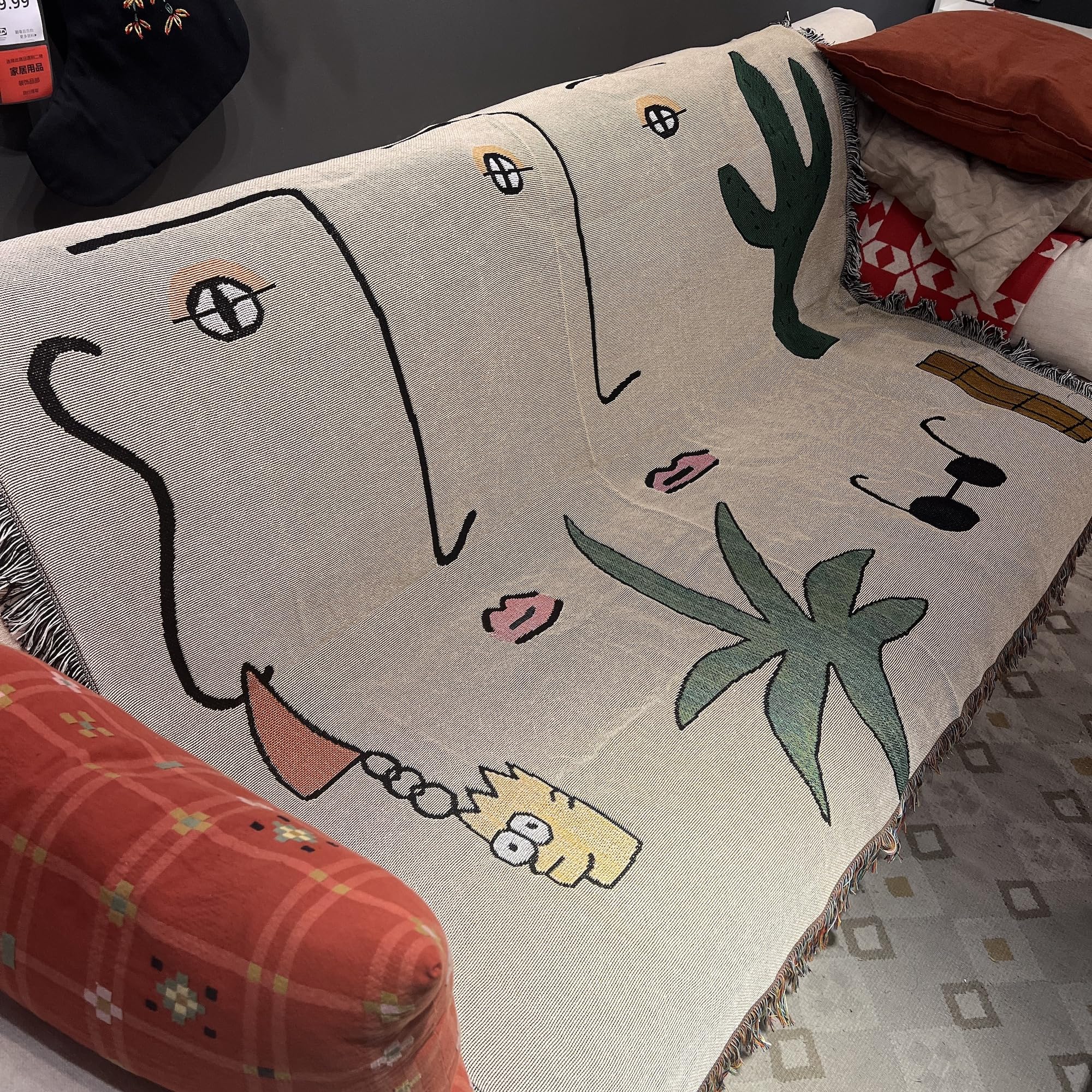 肌ざわりの良いコットン織物 ブランケット ラグ ソファ チェア ベッドなど様々な場面 お家 オフィス 旅行 デコレーション