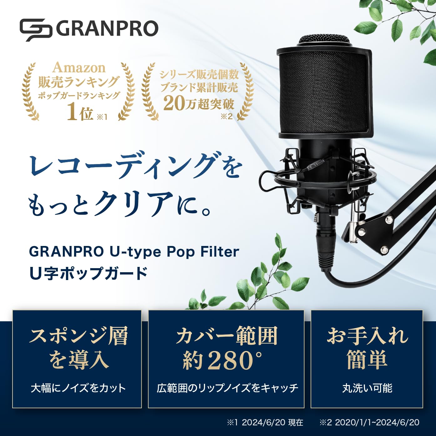 GRANPRO ポップガード ポップブロッカー 金属フィルター搭載 マイク ノイズ防止【スポンジ層搭載モデル】(リザード2) (黒色)