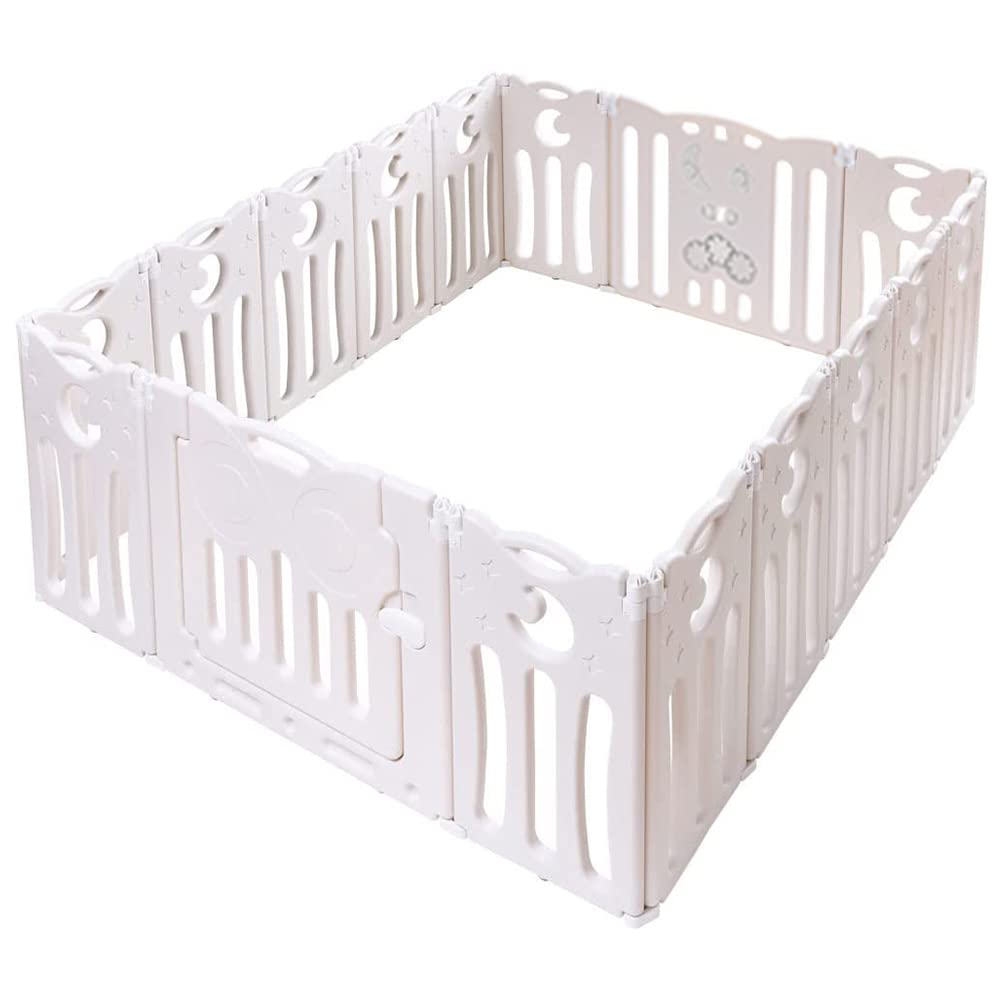 (送料込)アイリスプラザ ベビーサークル 折りたたみ 高さ60cm ドア付き プレイヤード ハイタイプ 大型 小さめ ジョイント式 扉ロック ホワイト 16個 (x 1)