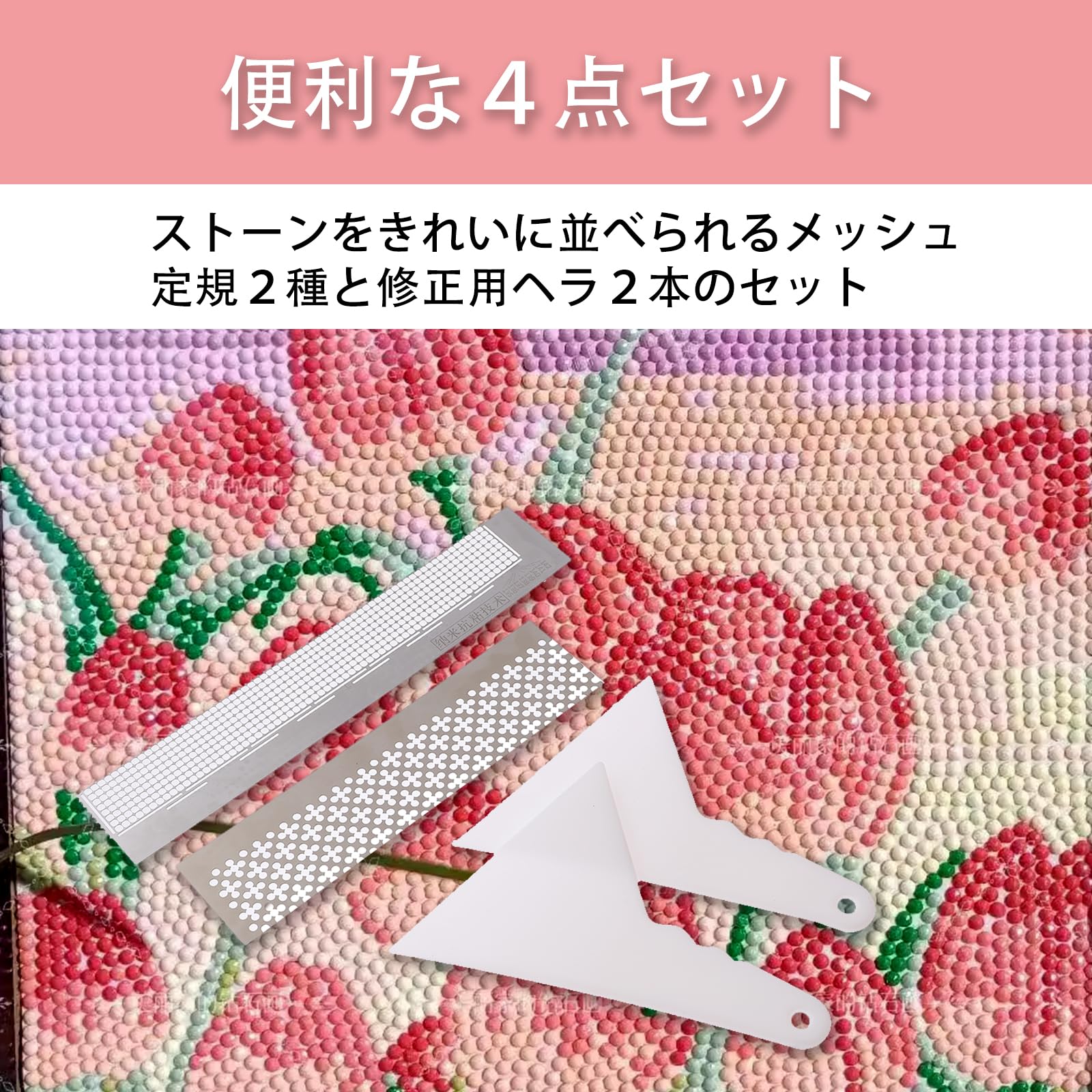 ダイヤモンドアート用のツールセット:ダイヤモンドアートで活用できるステンレス製のメッシュ定規と修正用ヘラのセットです。