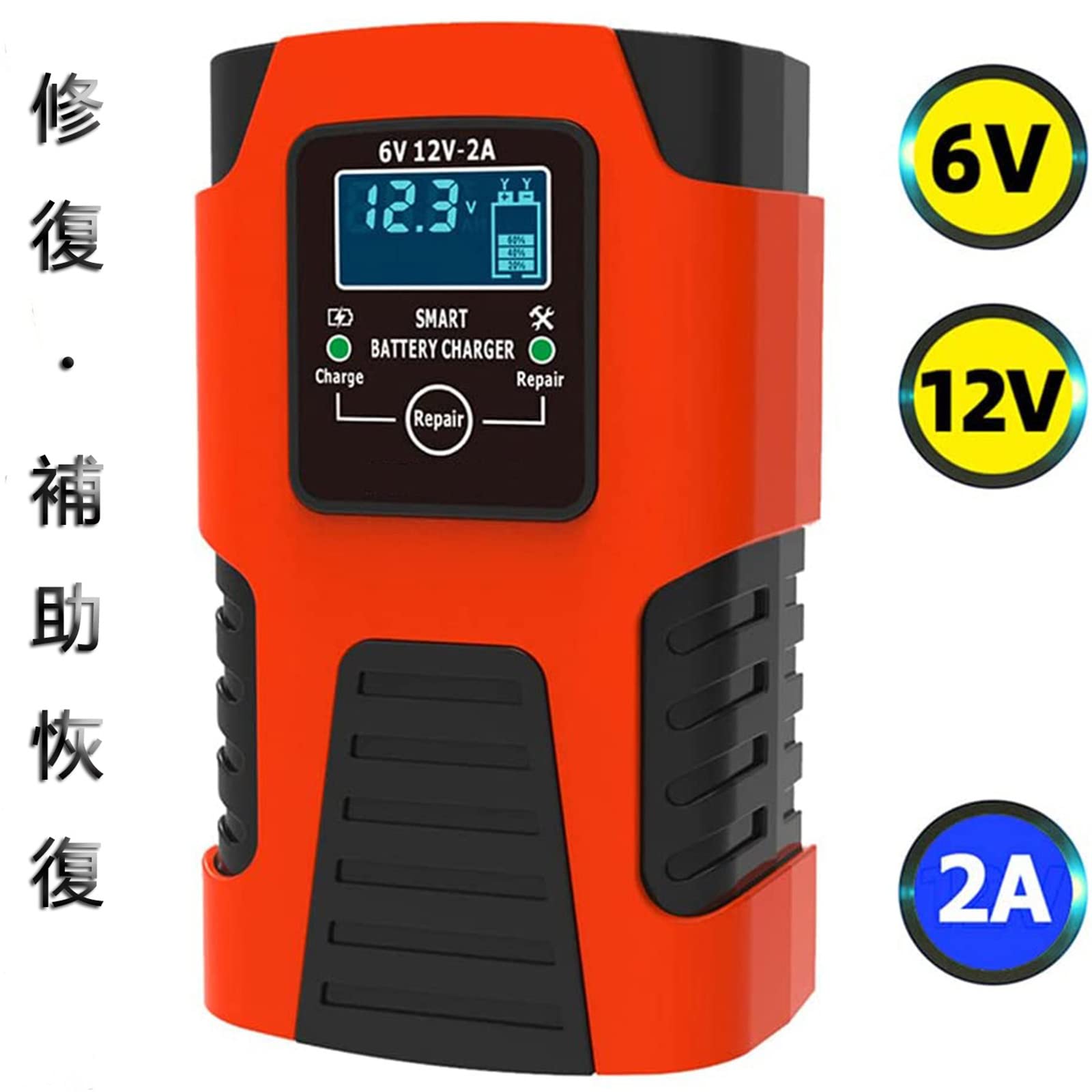 修復充電:電圧が低下したバッテリー、長時間使っていないバッテリー、古いバッテリーに適用できる修復充電モードで、パルス充電で、サルフェーションを除去して、バッテリーを恢復されます。