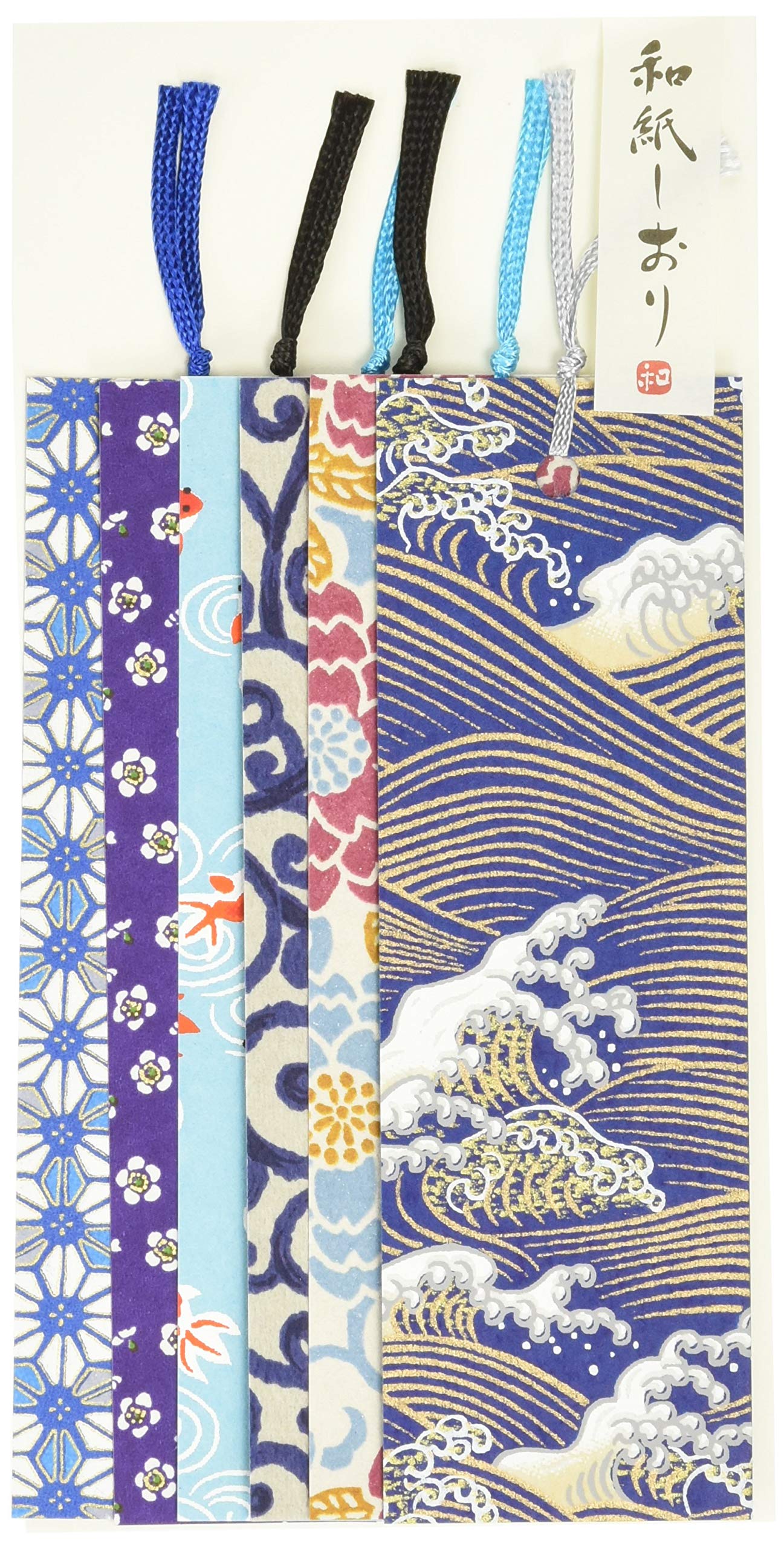 【 限定】和紙かわ澄 友禅和紙 型染め しおり ブックマーカー 6枚入 青色系Cセット
