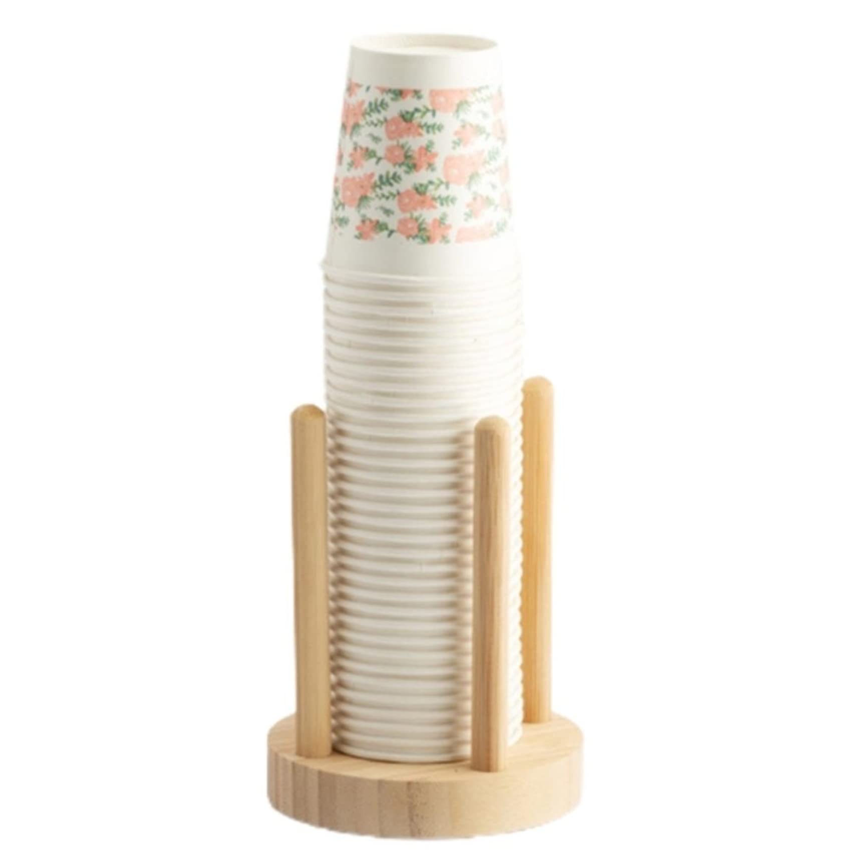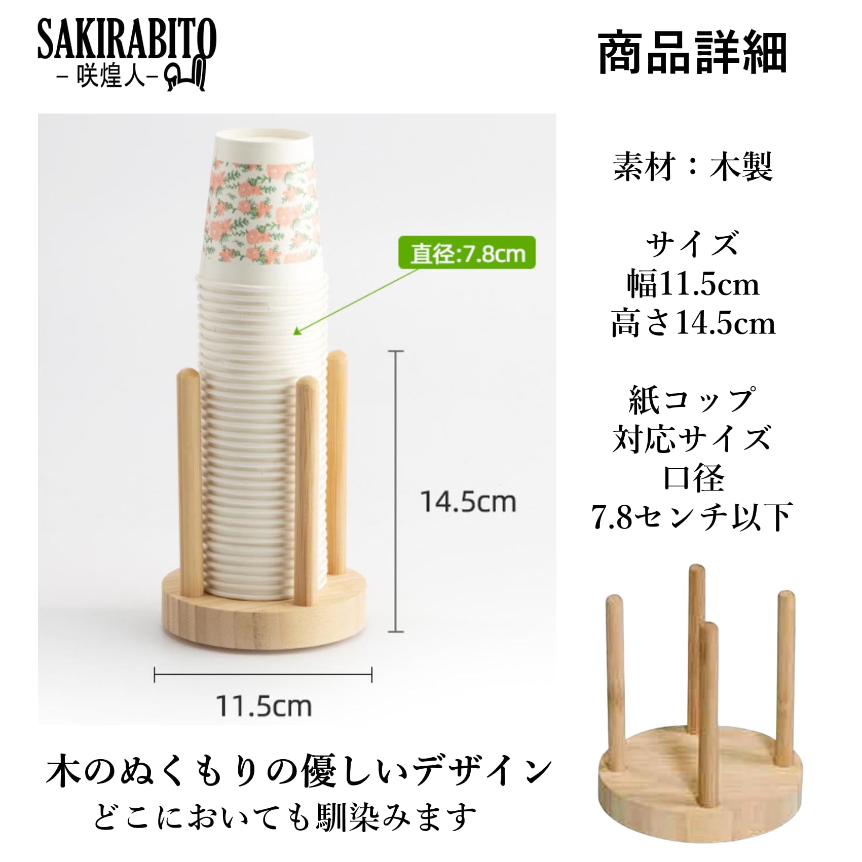 SAKIRABITO 紙コップ カップホルダー カップディスペンサー 木製 蓋 収納 滑り止め付き 口径7.8センチ以下対応