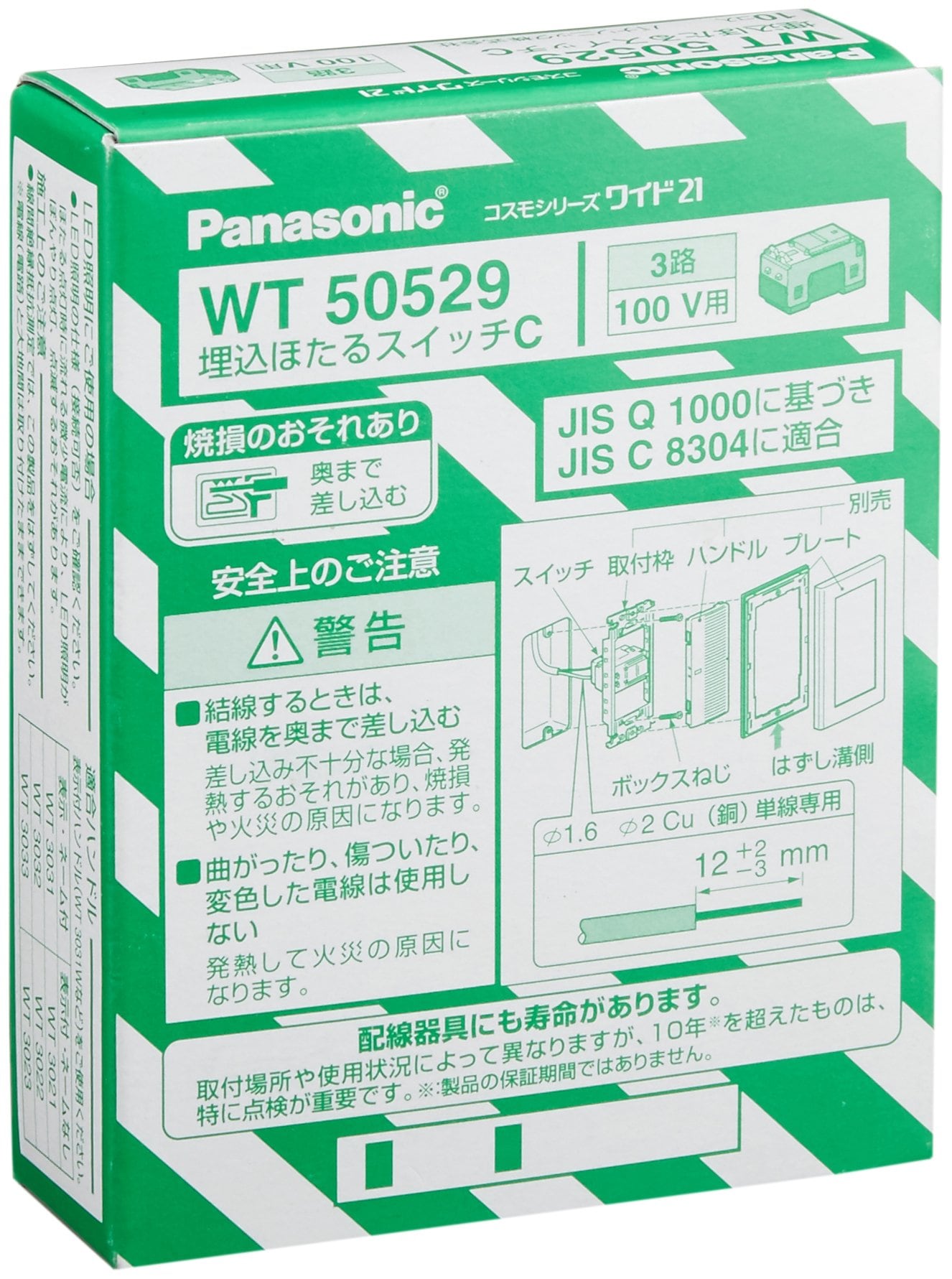 パナソニック(Panasonic) コスモシリーズワイド21 埋込ほたるスイッチC 3路 10個入 WT50529