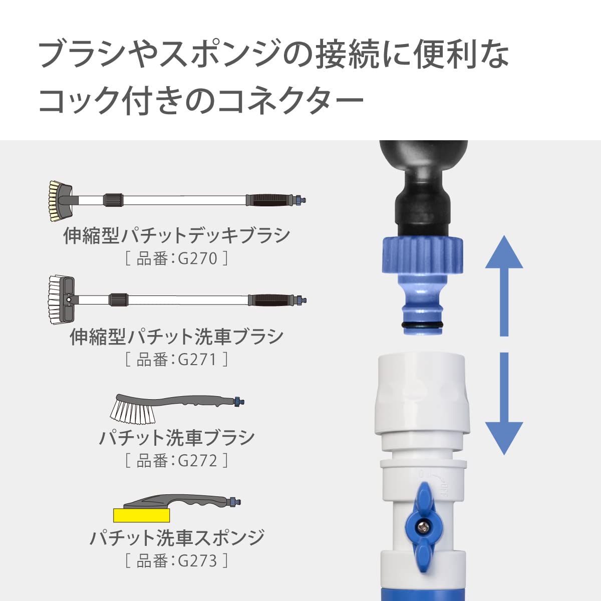 コック付で洗車ブラシ(G272)などをワンタッチで接続し、通水・止水、水量調節が可能です。